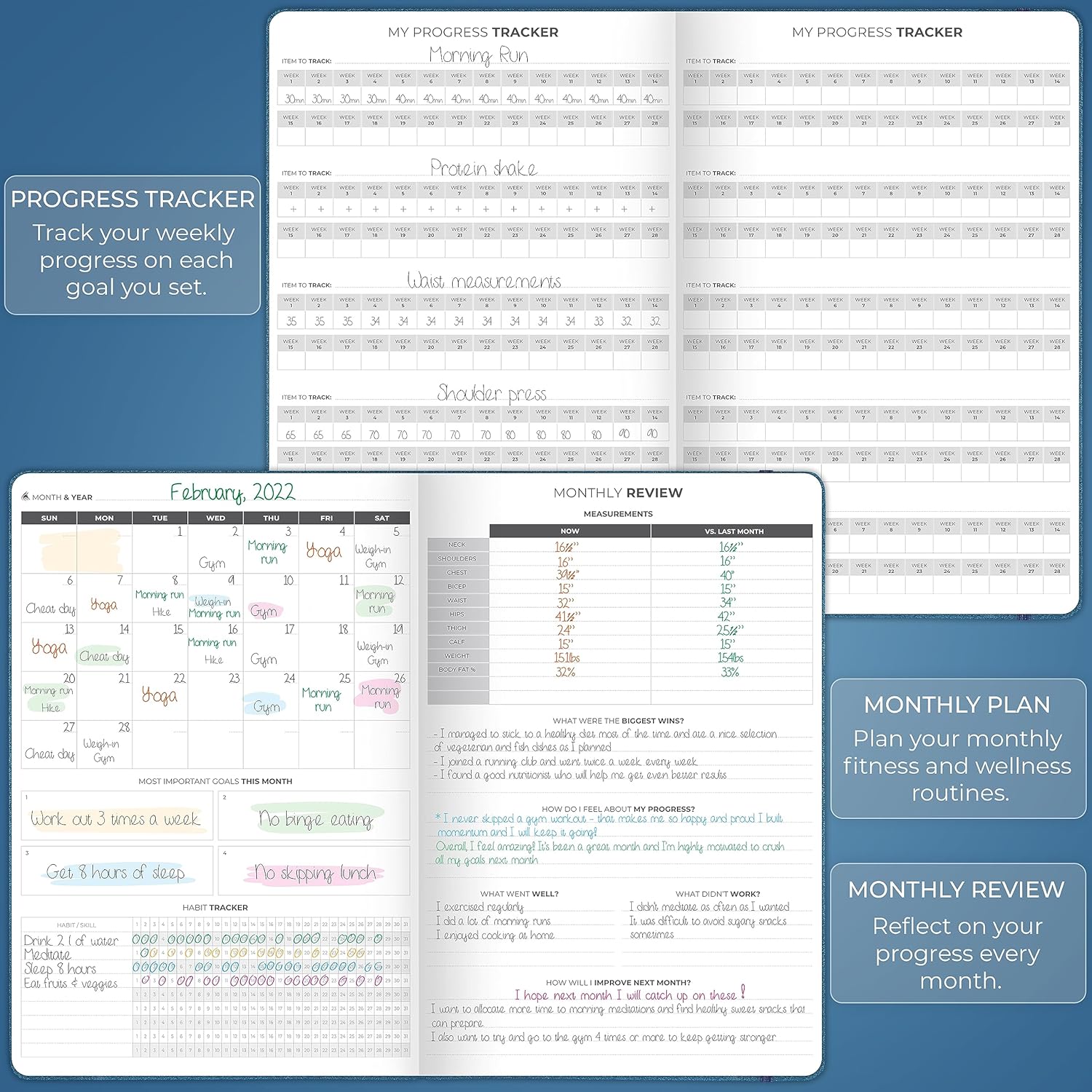 TRACK YOUR PROGRESS WITH TRACKERS – This fitness planner includes a body measurement tracker, a weekly progress tracker, a daily habit tracker, and 6 comprehensive monthly reviews to reflect on your performance at the end of each month.