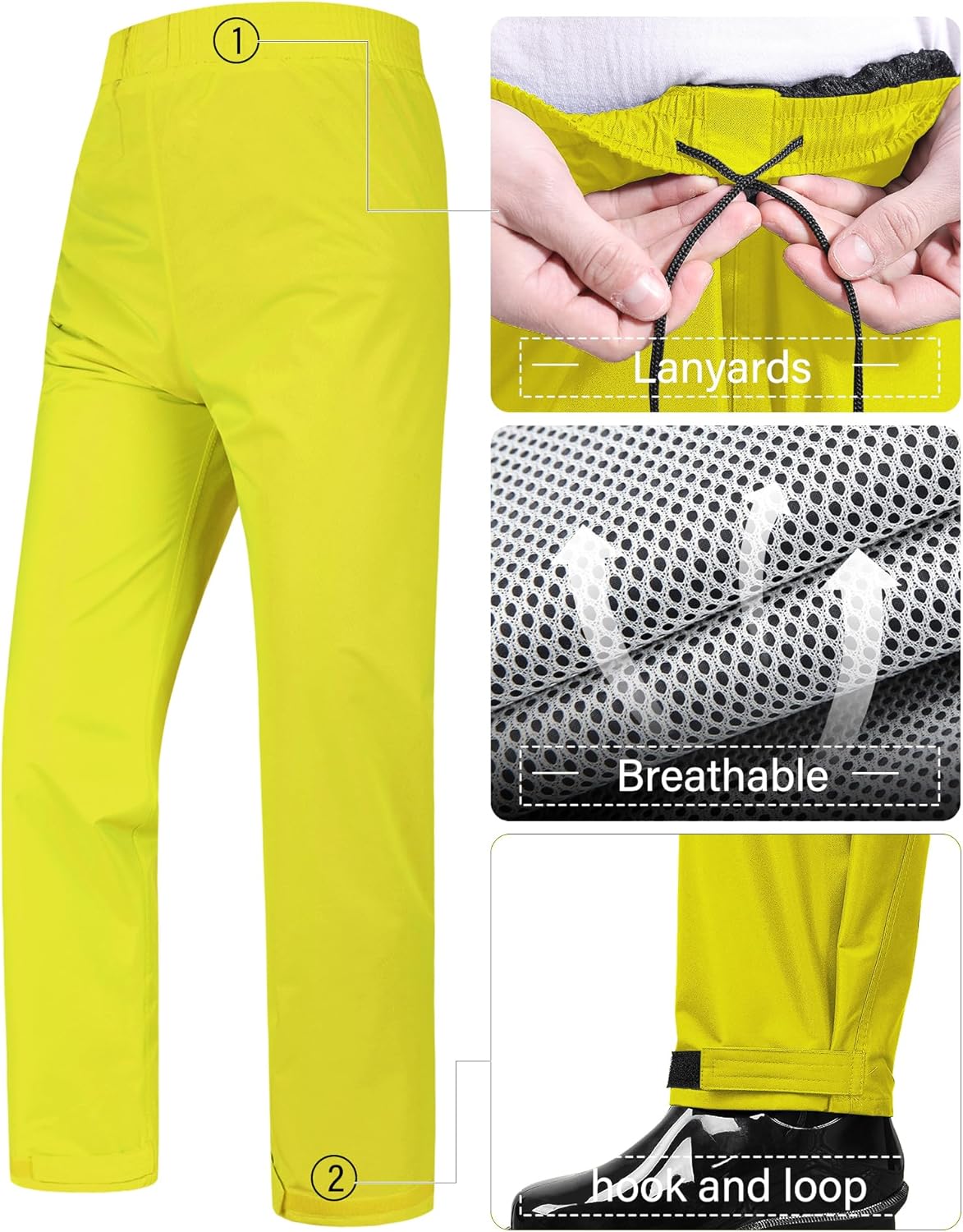 Customers find the rain suit well-made and waterproof, keeping them dry even in hard rain, and appreciate its amazing quality and value for money. The suit is comfortable over clothes and holds up well in tough conditions, with one customer noting its sturdy zipper storage/carry bag. The fit receives mixed feedback, with some finding it great while others say it runs larger than expected, and opinions vary on the pockets, with some praising them while others note the lack of them in the pants. Customers disagree on the warmth, with some saying it keeps them warm and dry while others find it too hot to wear.