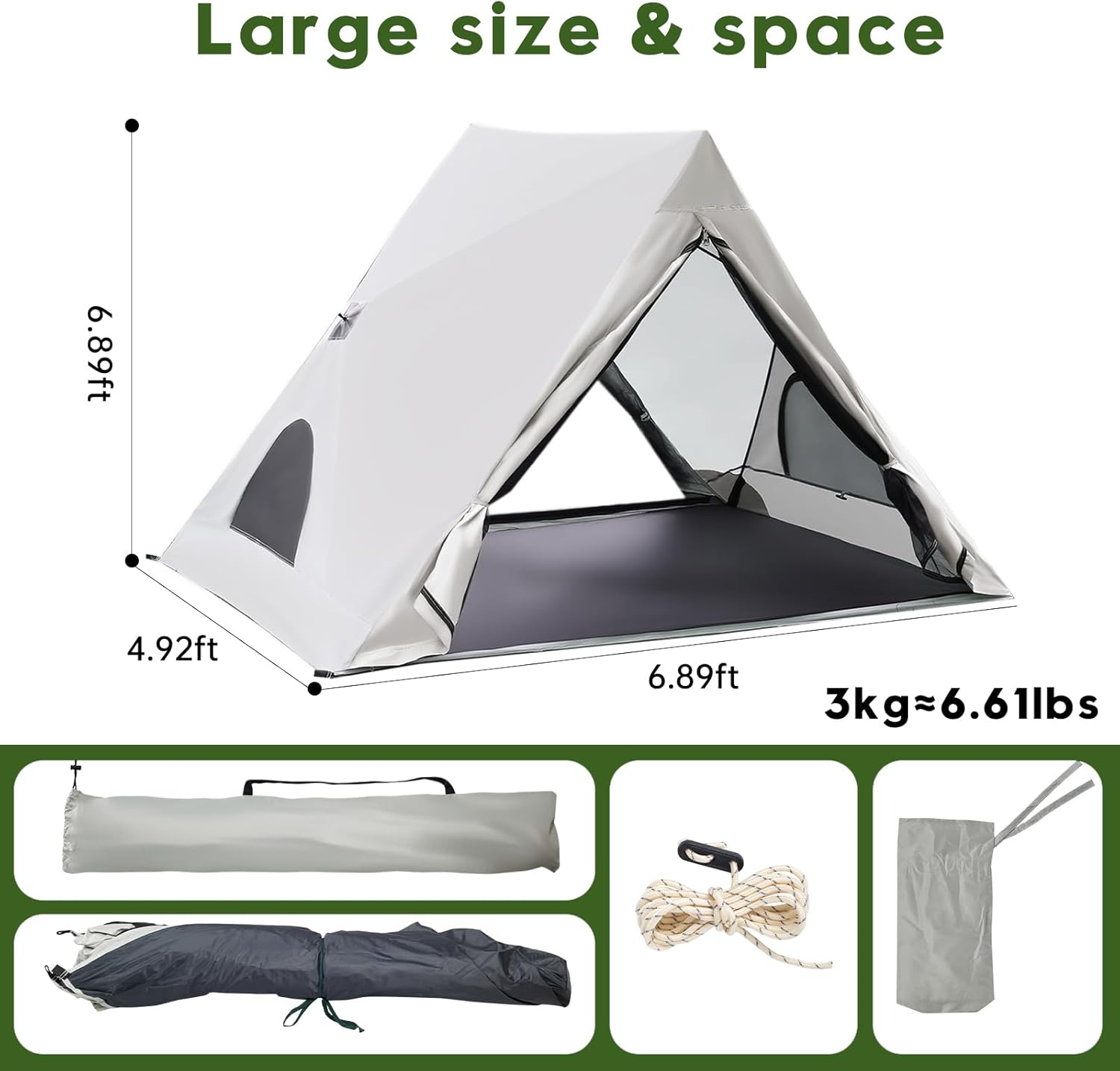 【Dome-Like Interior In A Compact Shape】Despite its compact A-frame look, this quick setup hiking tent delivers a dome-like interior feel. The unique pole design offers extra headroom, making it comfortable to sit up and move around, perfect for small groups needing more space.
