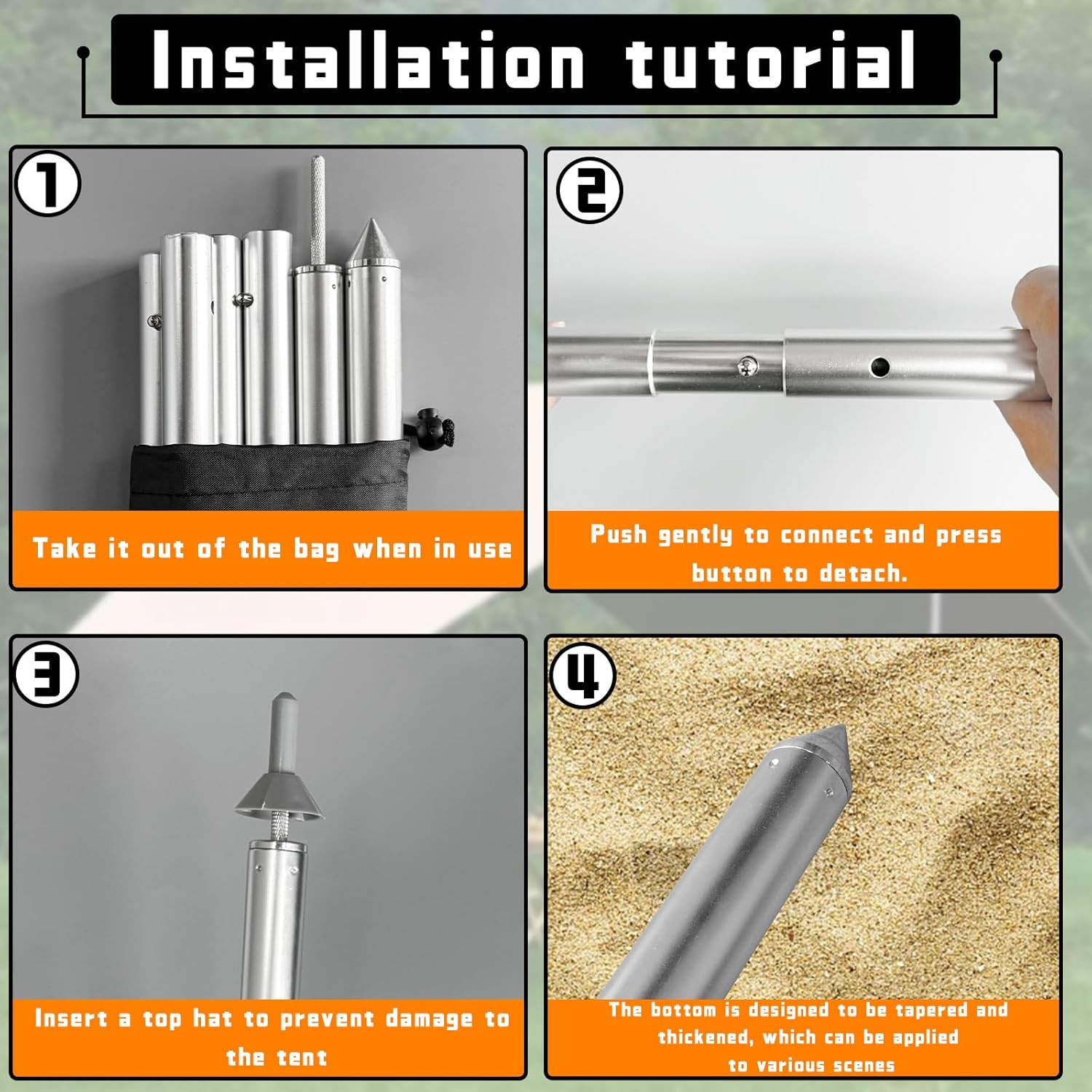 【Heavy-Duty Aluminum Construction】 Made from thickened, lightweight yet sturdy aluminum alloy, these canopy poles replacement resist rust and bending, providing reliable support for your sunshade or beach canopy in windy conditions.