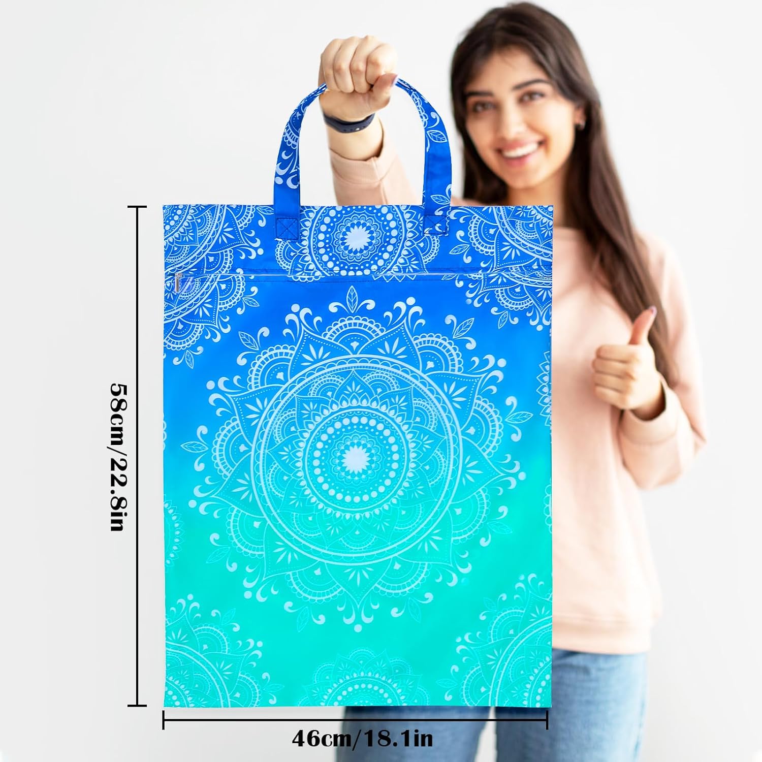 Customers find these laundry bags spacious, with one mentioning they fit all family swim suits, and appreciate their durable construction with sturdy handles. The bags are waterproof, keeping everything dry, and customers like their design, particularly the flamingo and leaf patterns. They are functional and easy to carry to the laundry room, with one customer noting they can double as beach bags. The zipper quality receives mixed feedback – while some say it’s good, others report it breaking during first use.