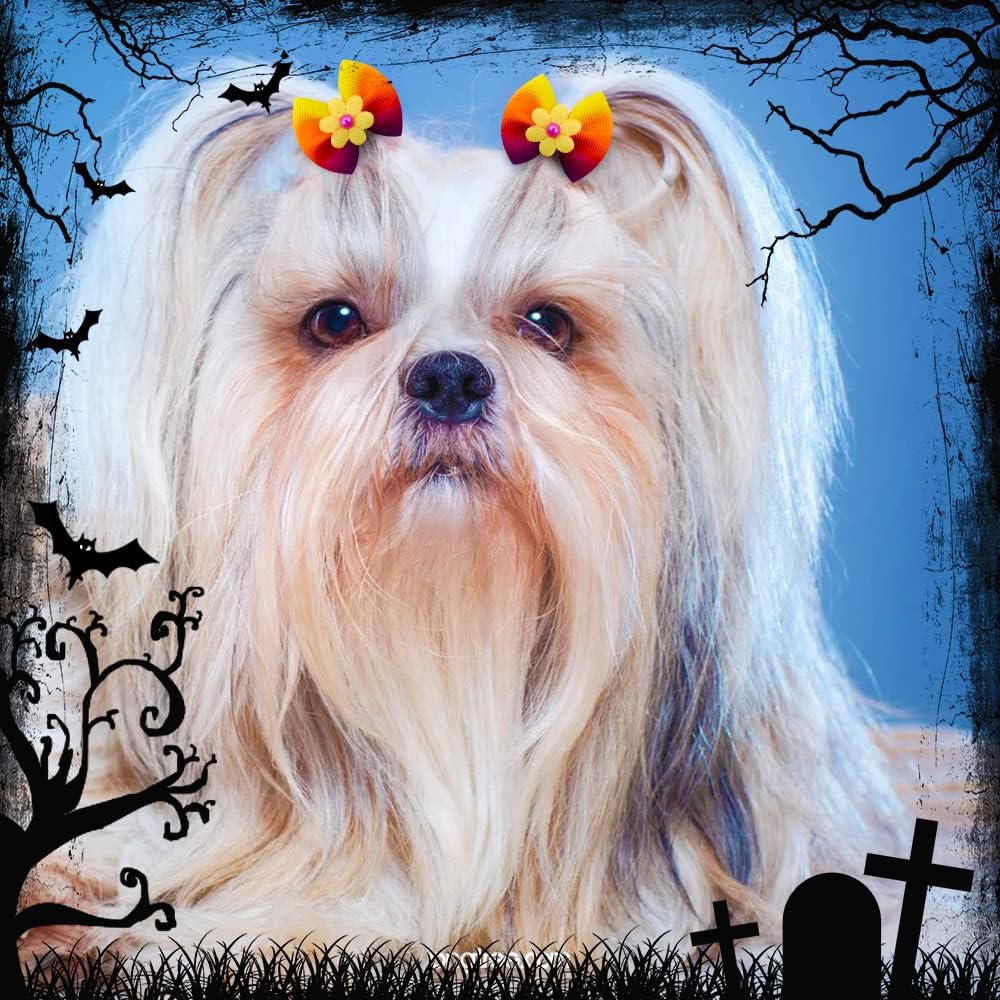 Be Full of Halloween Element Pattern Dog Hair Bows: As a professional pet groomer and dog owner, always on the lookout for different bows, These are great for cute dog. Can’t wait to use them! you will get 80pcs/40pairs varies colors designs halloween dog hair bows, dog bows can make them adorable and chic, your cur pet wearing puppy bows will stand out, charming and eye-catching. Which is suitable for most small and middle sized pet dog bows with rubber bands.