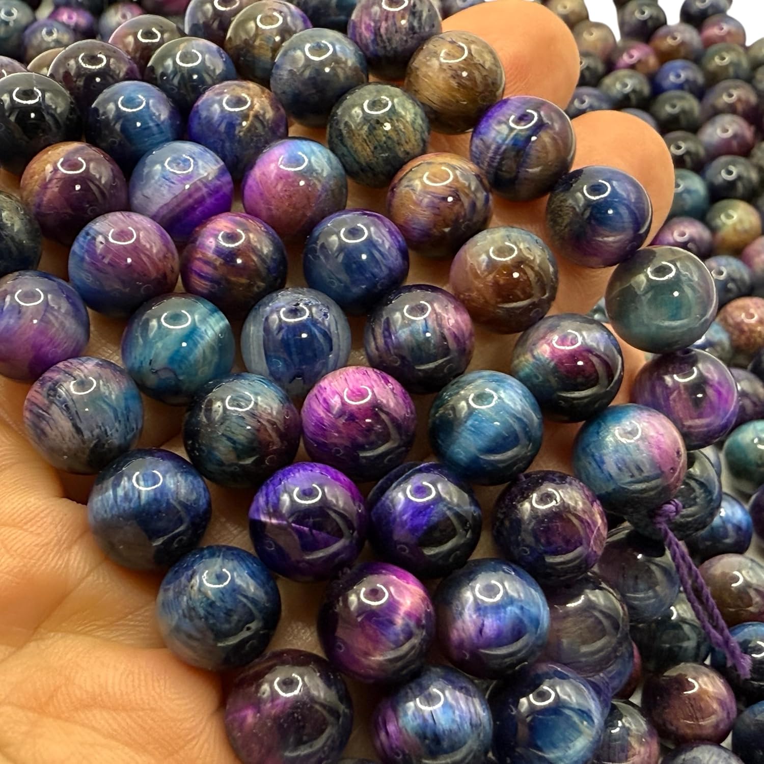 ABCGEMS High-Flash Galaxy Tiger Eye Beads from Africa (Blend of Blue & Purple Hues That Mimic The Beauty of The Galaxy) Smooth Round 10mm