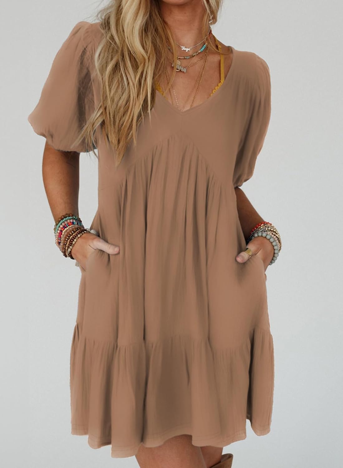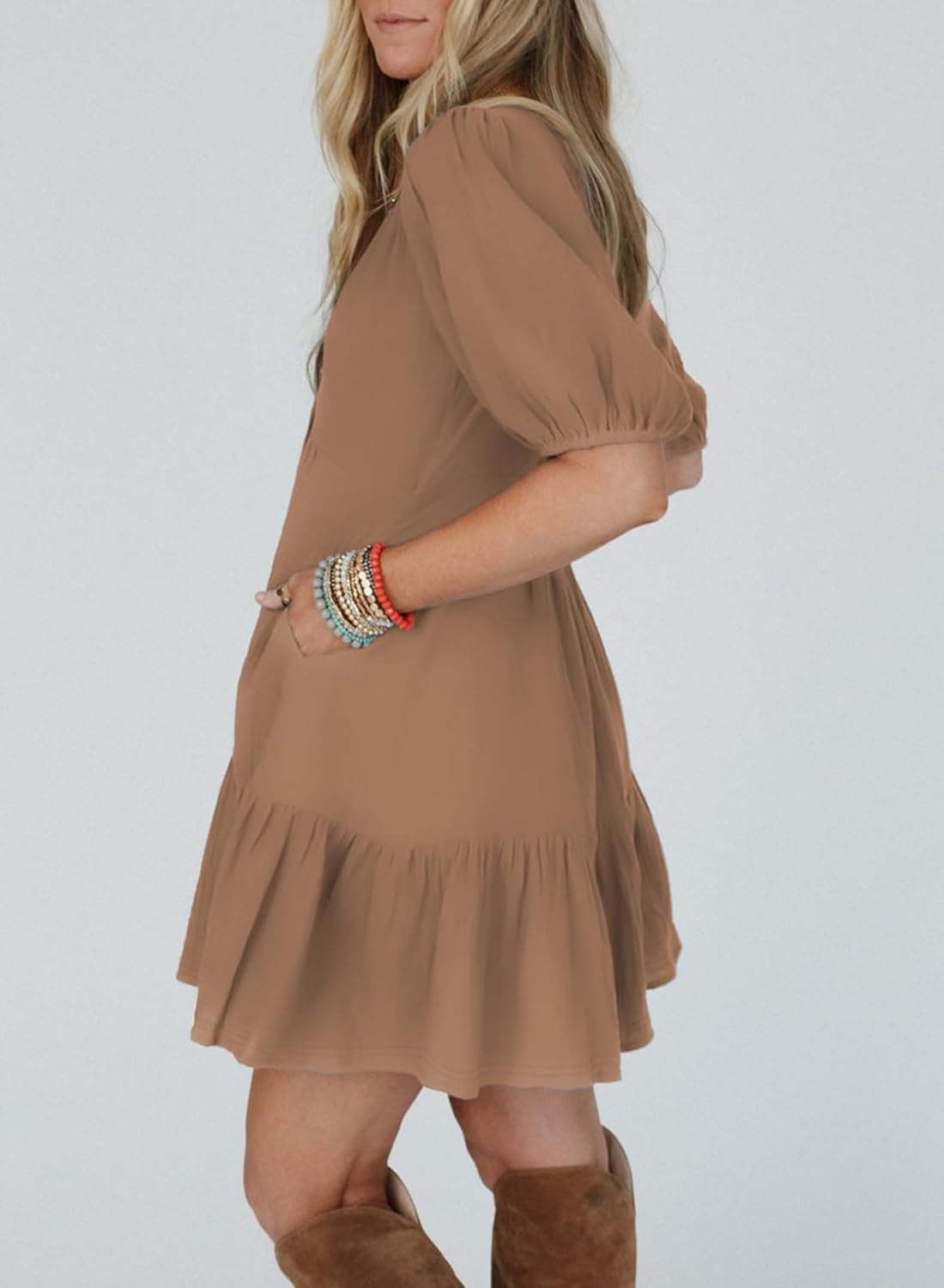 Acelitt Summer Dresses for Women 2025 Puff Short Sleeve Ruffle Tiered Mini Dress