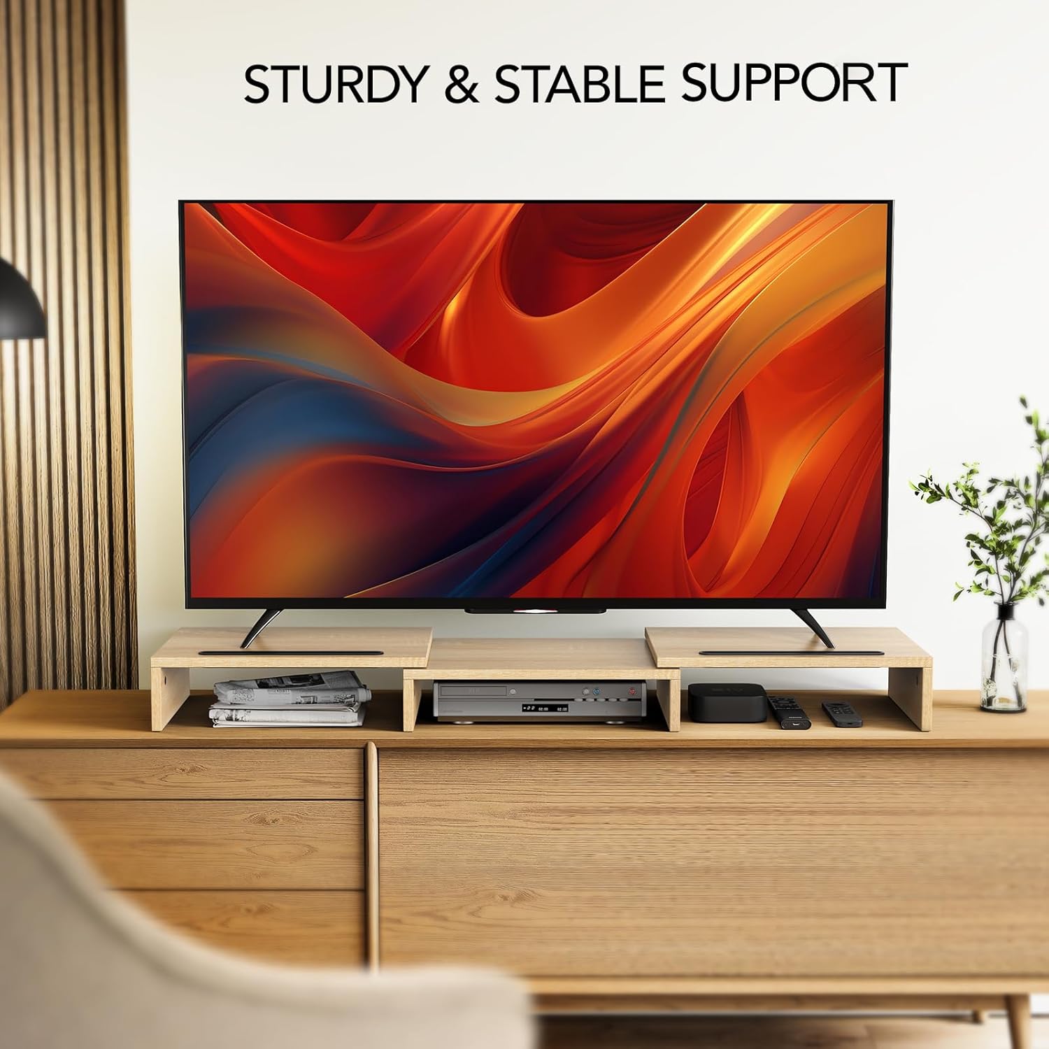 CUSTOMIZE YOUR STAND: Freely adjust the height and angle as you need. This dual monitor riser could help you to form a comfortable sitting position and gain a better viewing experience.