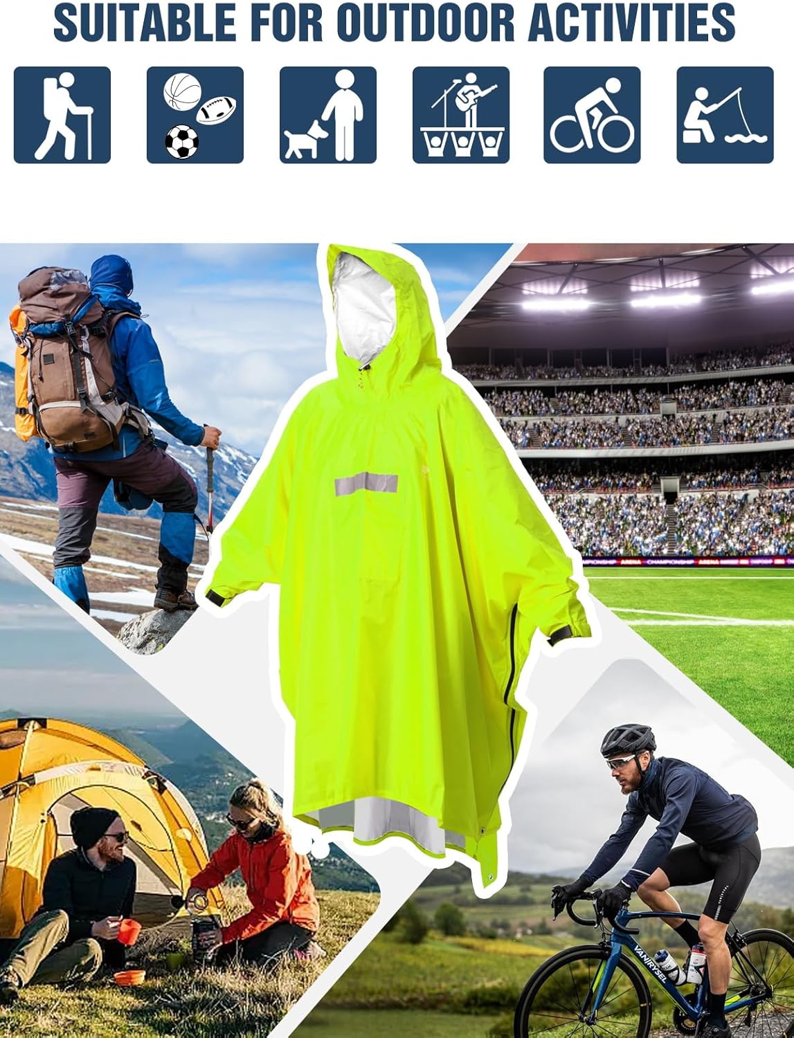 Customers find the poncho effective at keeping them dry and appreciate its build quality, noting it holds up well in light/moderate rain and has strong grommets. The product is lightweight enough to carry in backpacks, features a bright vibrant color, and offers good value for money. They like its size, with one customer mentioning it’s large enough to cover bulky clothes underneath, and appreciate its protective features, including its use as an emergency shelter.