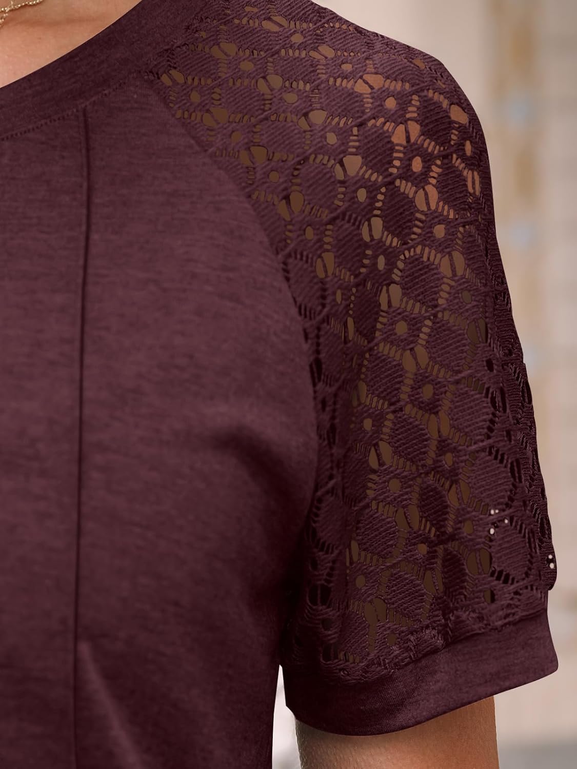 AUTOMET Womens T Shirts Lace Tops Fashion Short Sleeve Trendy Business Casual Dressy Knitted Summer Clothes 2025