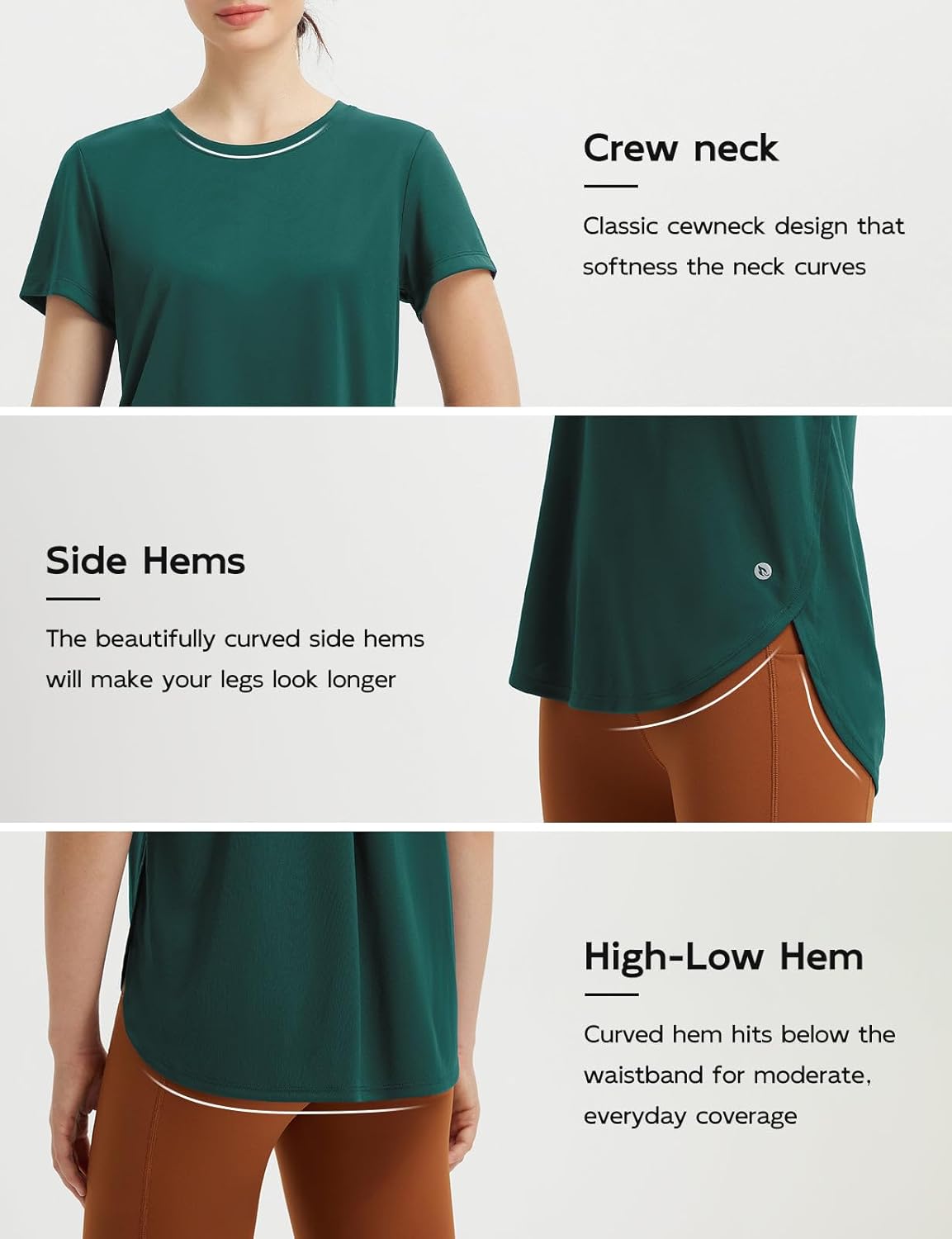 baleaf Women’s Short Sleeve Workout Shirts Athletic Running Yoga Tops with Curved Hem Quick Dry Sun T-Shirt UPF 50+