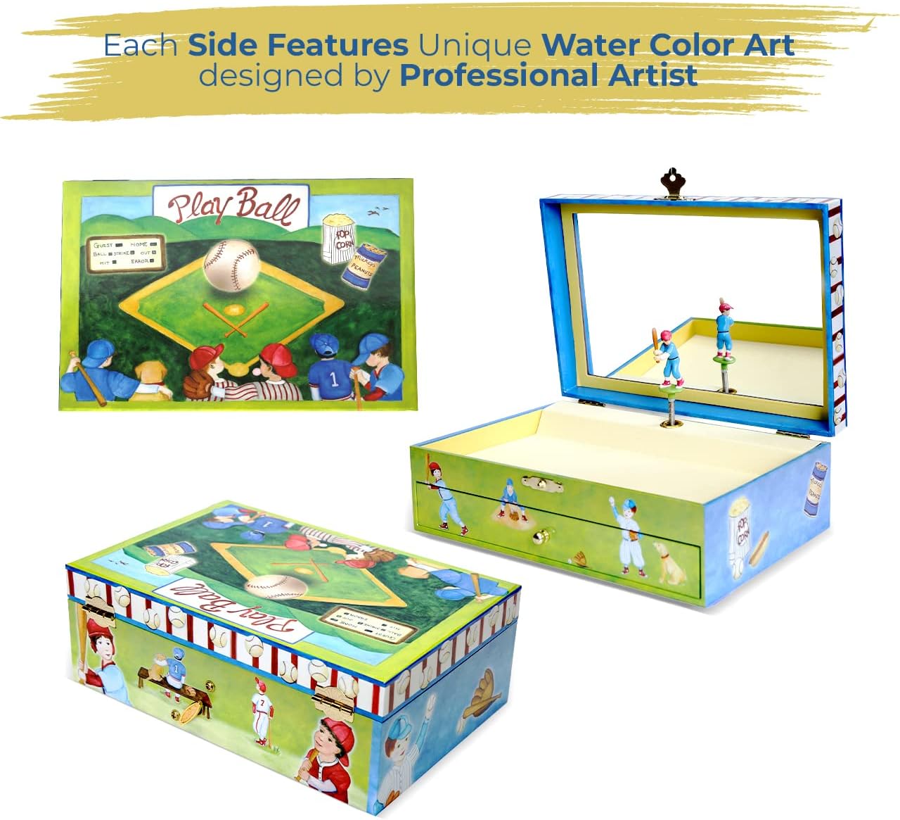 🎁 THE PERFECT GIFT: These professional artist-designed “Take Me Out to the Ball Game” playing music boxes are a surefire way to light up a little one’s face during the holidays, a birthday, or just because you love to see them smile. They are a magical way to bring nostalgia and child-like wonder to someone you love, regardless of age. With its harmonious blend of artistic craftsmanship and melodious charm, these music boxes are sure to enchant both the eyes and ears.