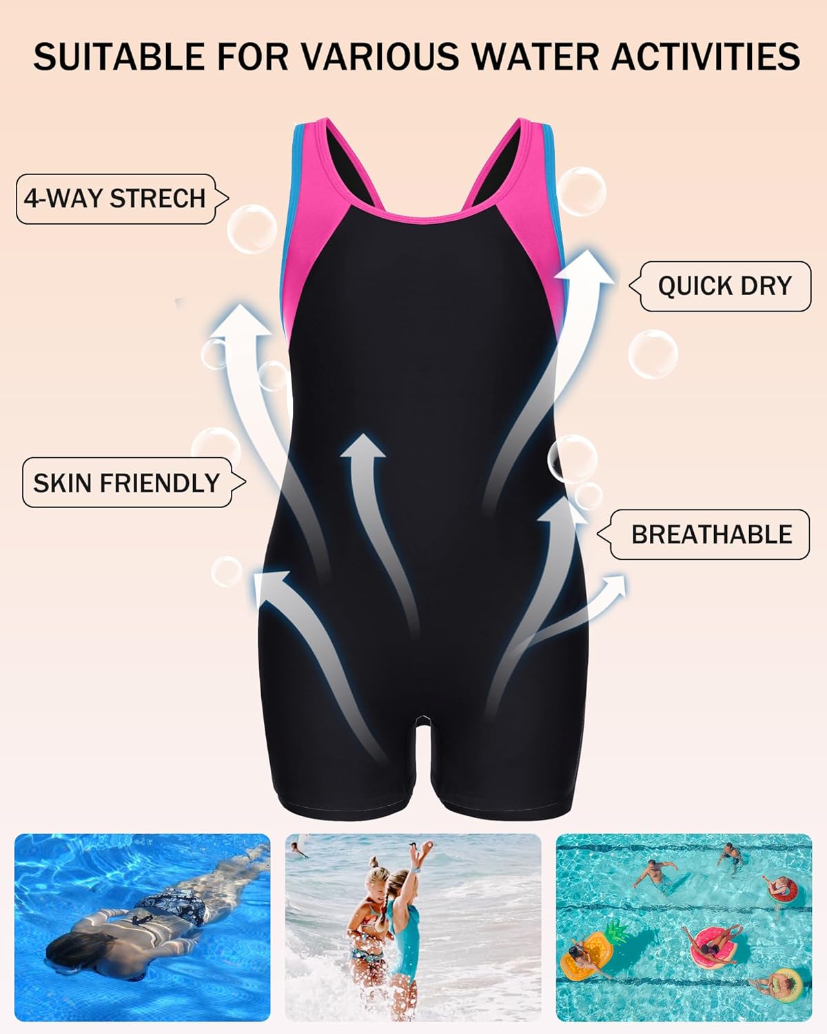 beautyin Girls Swimsuit Size 8-14 Boyleg One Piece Athletic Bathing Suit Training Swimwear