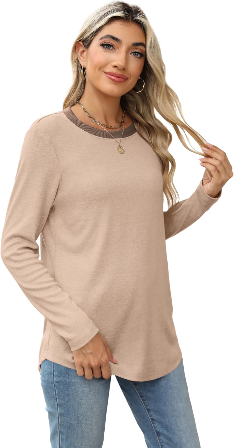 Besshopie Womens Long Sleeve Shirts Crewneck Casual Tunic Tops Fall Fashion Outfits
