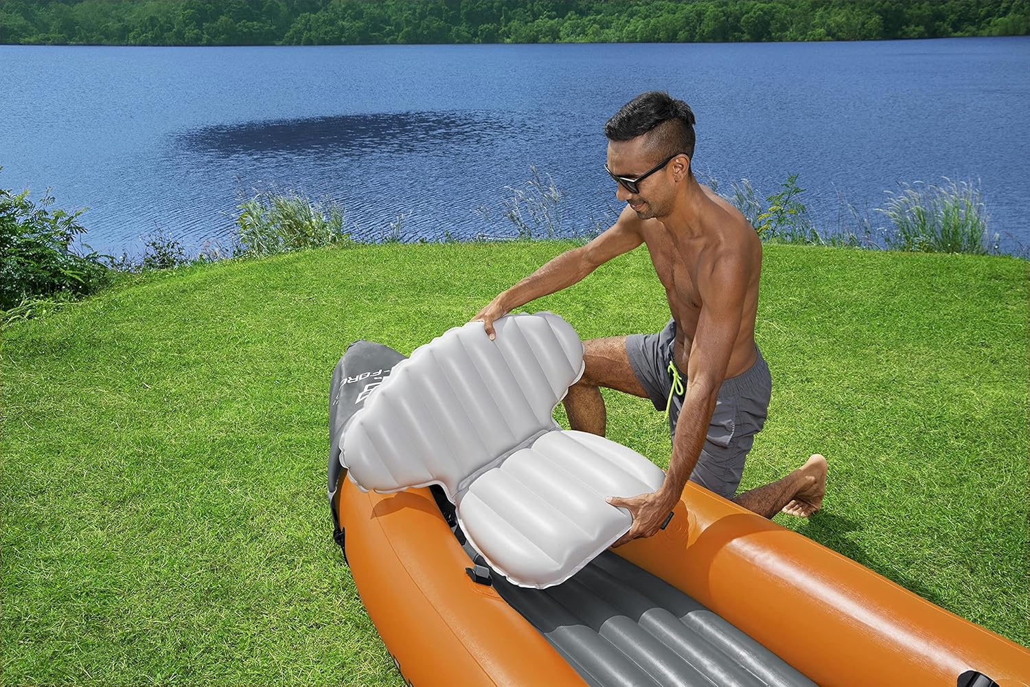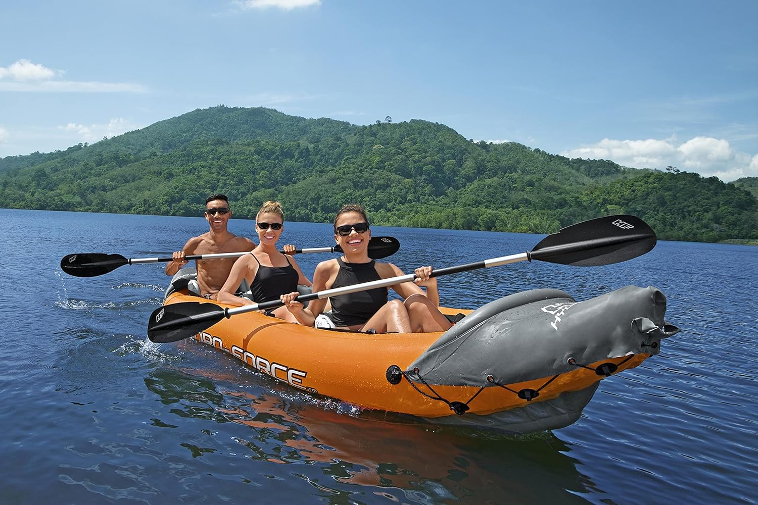 Bestway Hydroforce Lite Rapid Kayak, 3 Person Inflatable Kayak Set, Sit On Kayak with Seats, Backrest, 2 Paddles and Hand Pump, Orange, One Size, 65132