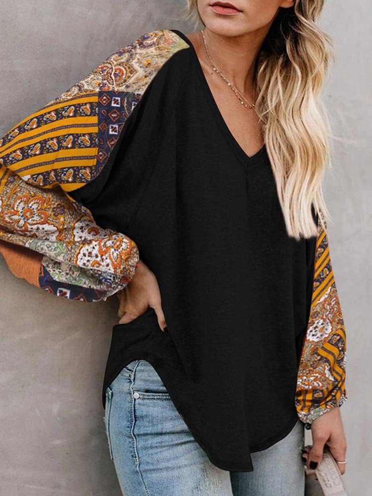 Women’s Casual Boho Blouse Loose Bohemian Shirt Balloon Sleeve