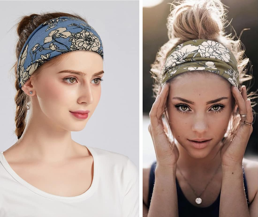 Boho Headband Fashion Wide Headband Knoted Turban Yoga Workout Head Bands Hair Accessories For Women (flower4, Pack of 2)