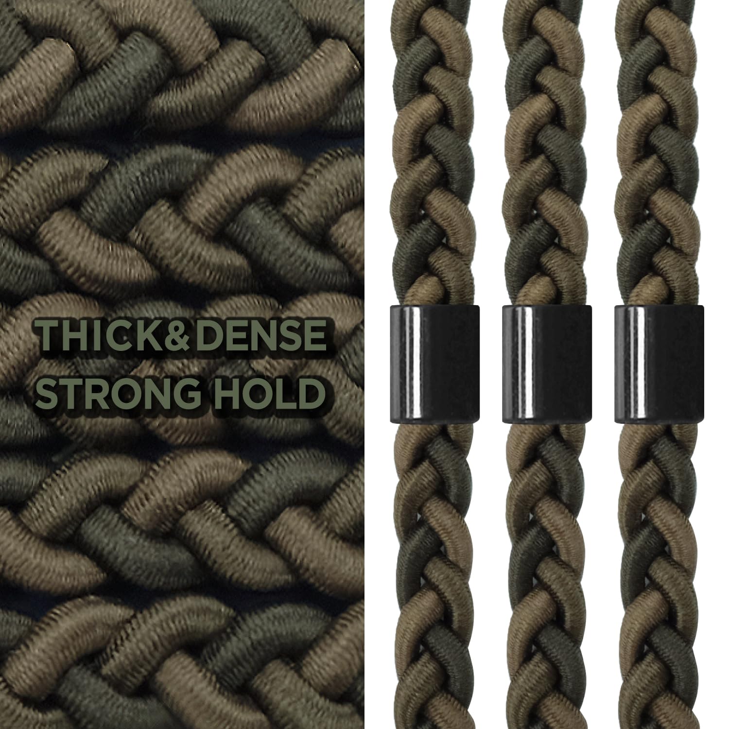 Braided Mens Hair Ties For Men 5 pcs(XL) – For Buns Curly Thick Dense Hair Elastic Hair Ties For Guys | No damage Crease Breakage Man Bun Hair Tie Men with Long Hair | hairtie For Men (Camo)