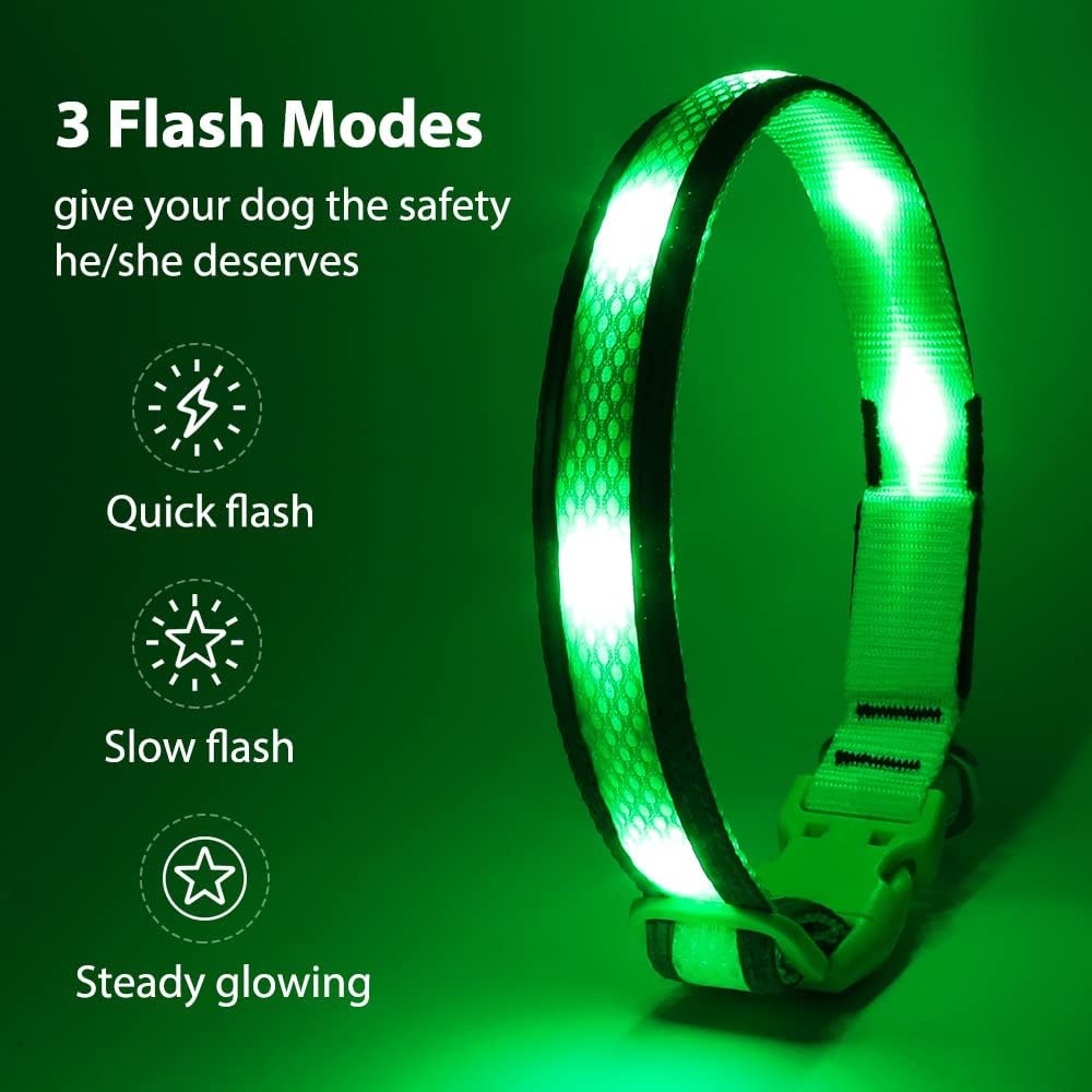 BSEEN Light Up Dog Collar – Reflective LED Dog Collar, Adjustable Puppy Collar, Rechargeable Dog Camping Gear Dog Collar Light for Small Medium Large Dogs (Large, Green Ⅱ)