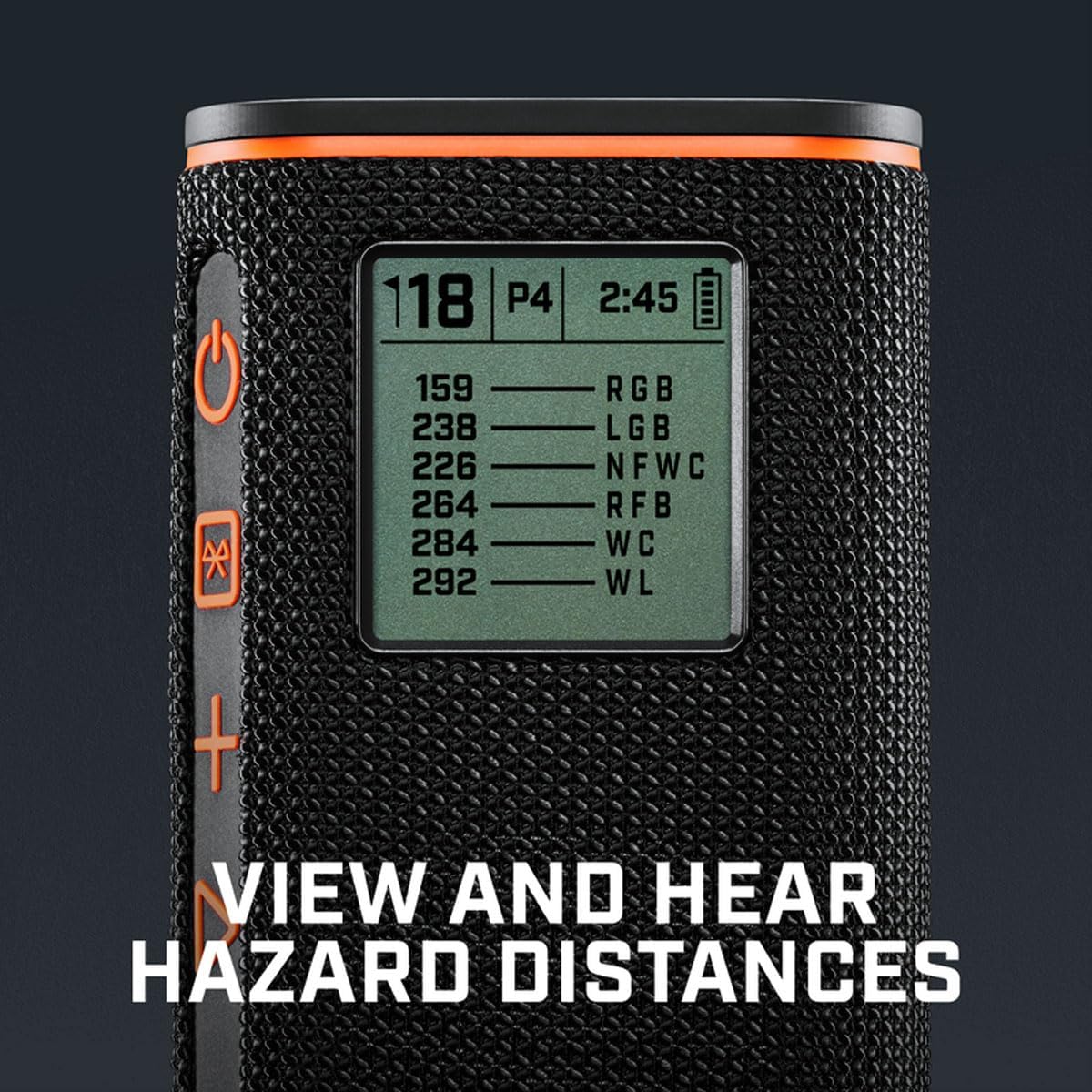 GET AUDIBLE CALLOUTS: Get audible distance readings from 36,000+ courses worldwide through the Wingman View by simply pressing the remote button. Front, center, and back of green distances. Get up to 6 audible and viewable hazard distances per hole on the Wingman View with the LCD screen