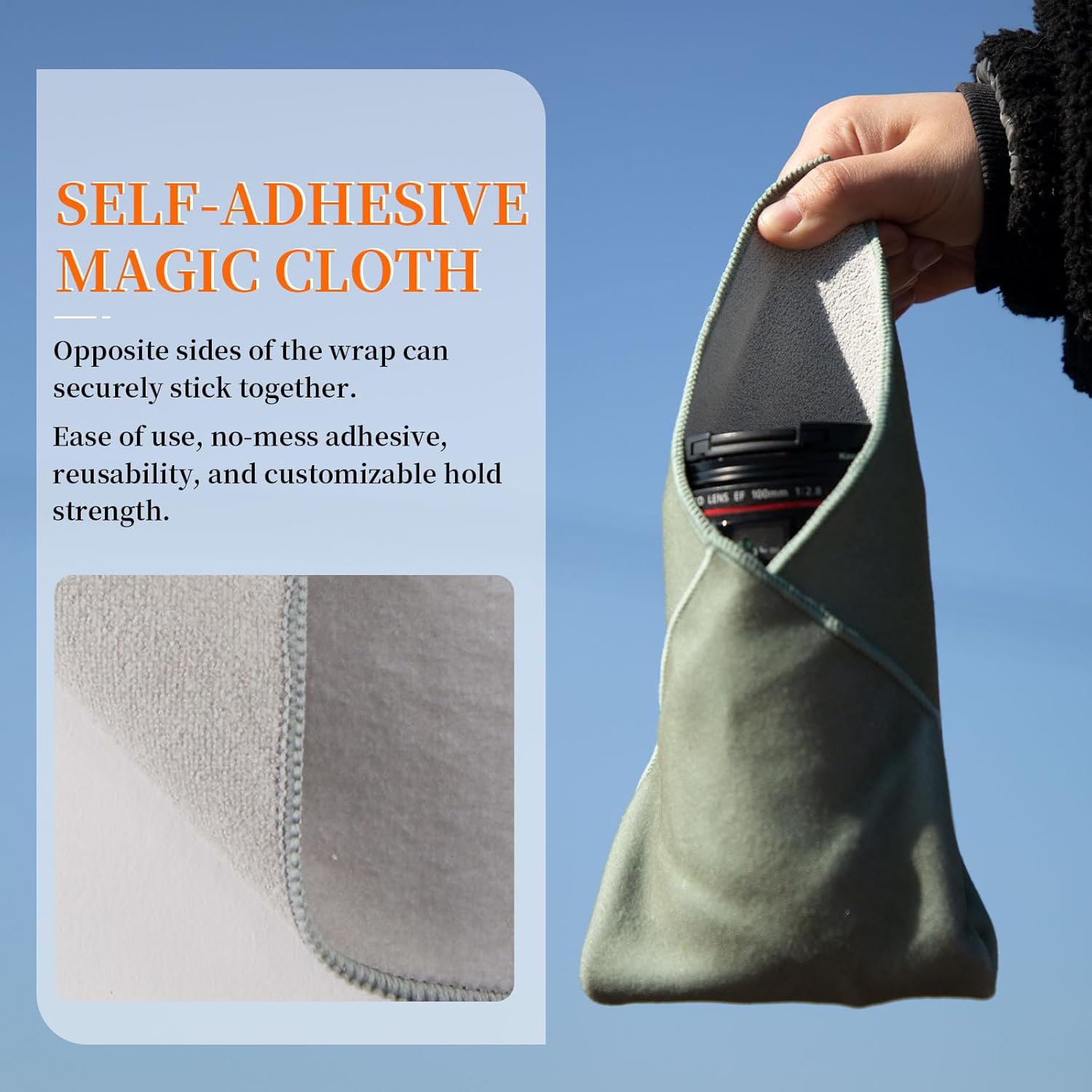 Camera Protective Wrap, Lens Protector, Magic Self-Adhesive Cloth for DSLR/Camera Lens/Phone/Accessories, 17.7”*17.7”