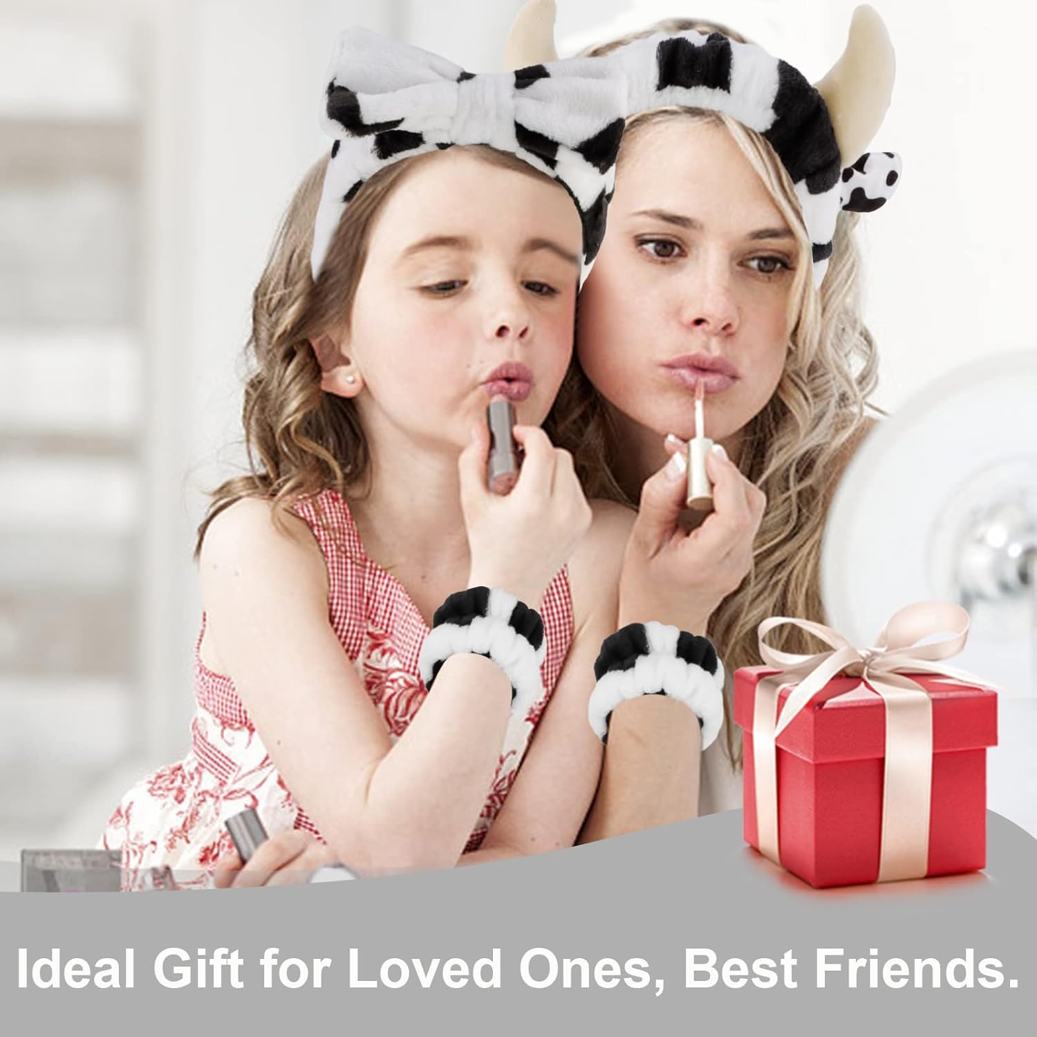 CUTE DESIGN: Wear these lovely cow ears headband and bow tie headband to start your journey of washing face and making up every morning, it must add a lot of fun.