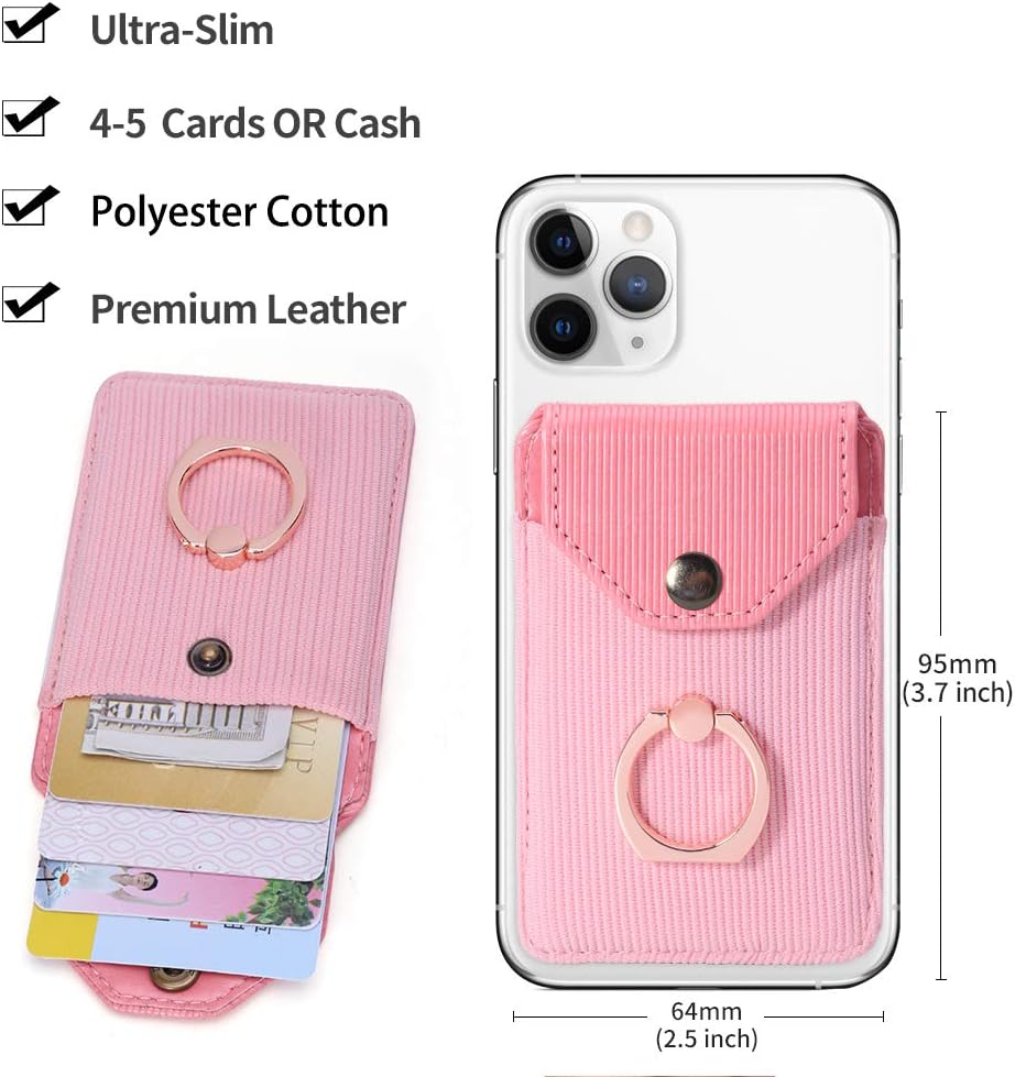 Card Holder & Ring Stand for Smartphones, Stick-on Wallet for iPhone & Android, Adhesive Credit Card Sleeve