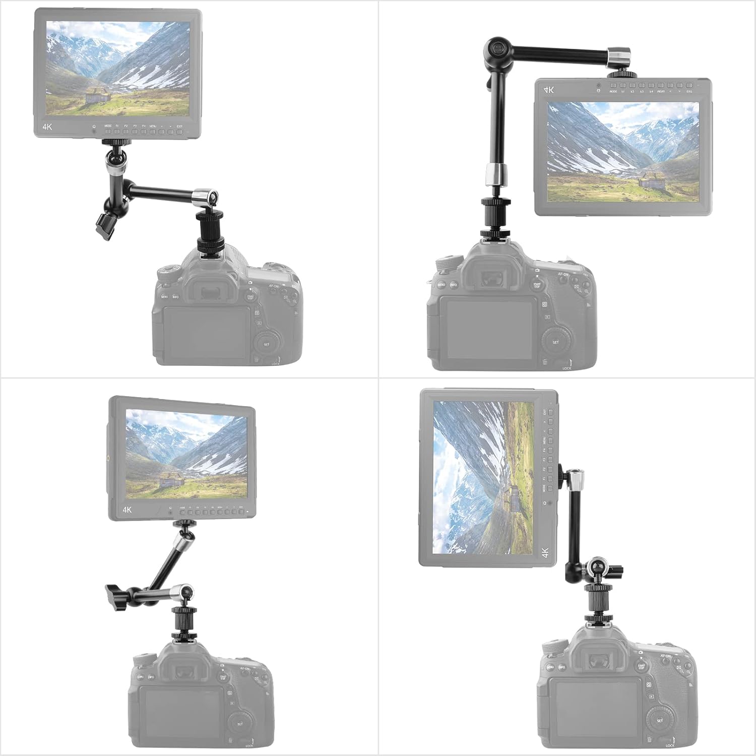 RUBBER CUSHION DESIGN- Both the super clamp and the articulating magic arm are equipped with rubber pads to prevent scratches on the monitor and help lock your device more tightly. Package includes: a Camera Clamp Mount and a Articulating Arm.