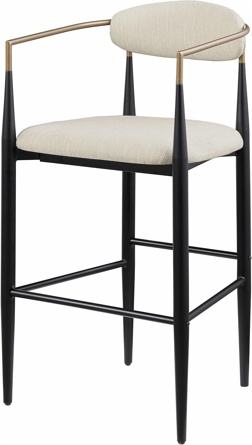 Add soft elegance to your kitchen or dining room décor with this set of 2 beige stools, featuring a clean contemporary design and subtle curves. The beige upholstery, foam cushion, and gently curved seatback provide comfort, while the slim, gold-finished arms and tapering legs bring a modern touch. A built-in footrest and plush seat make these bar stools perfect for everyday use. A stylish option for any home kitchen or home lounge.
