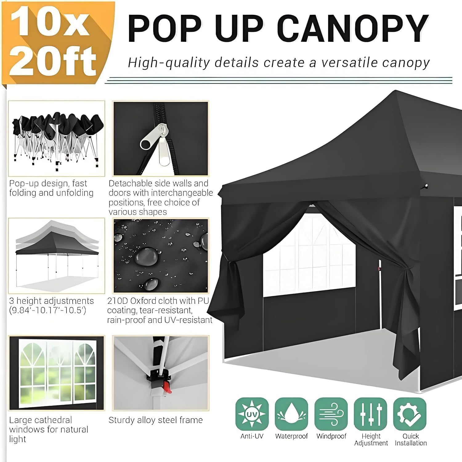 Multipurpose – Cobizi 10×20 pop up canopy is perfect for both commercial and events. Whether it’s a wedding, family reunion, graduation, tailgate or garden backyard event, this party tent can meet all your needs.