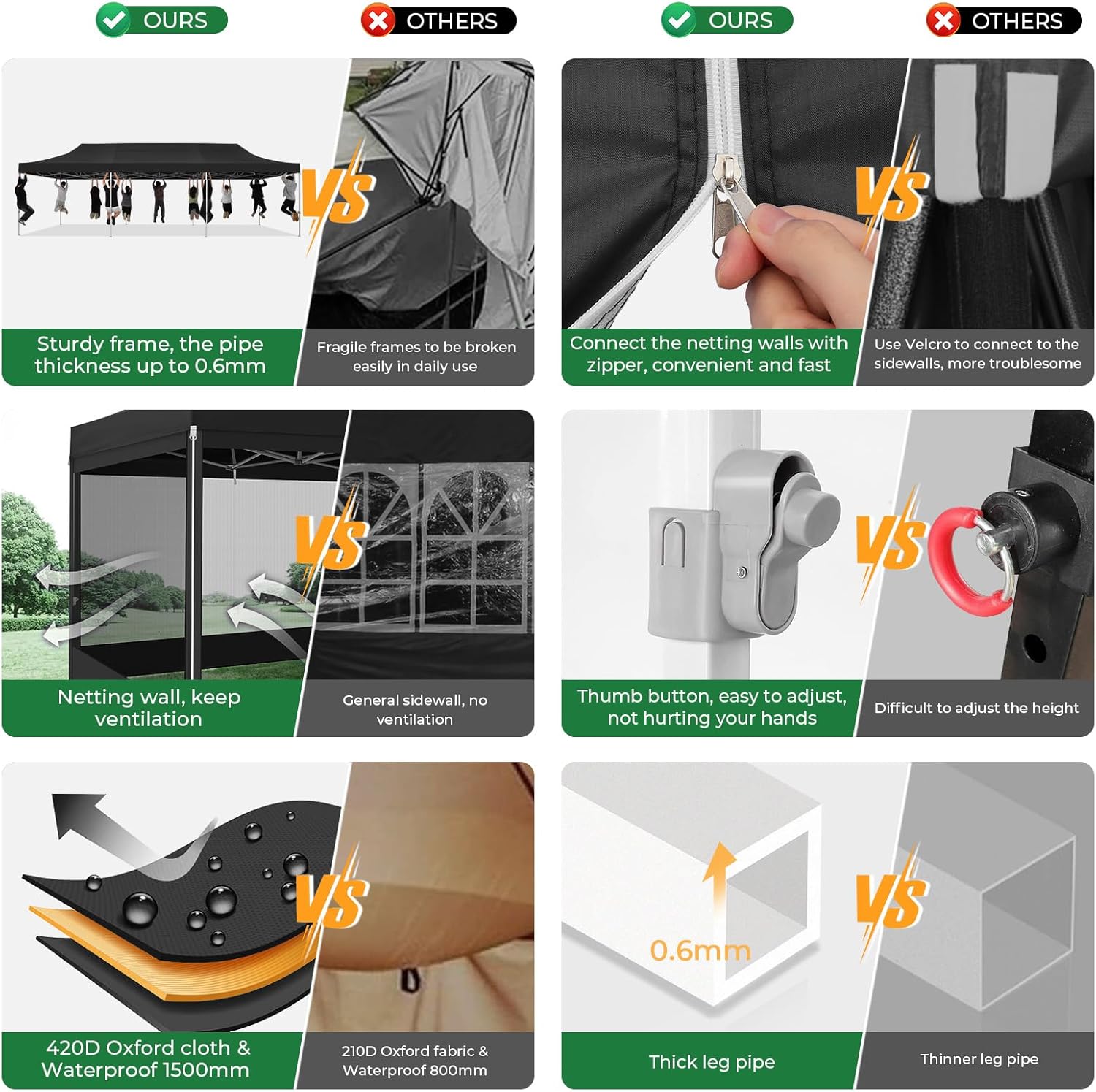 Detailed Comparison of COBIZI Pop Up Screened Canopy Tent with Netting