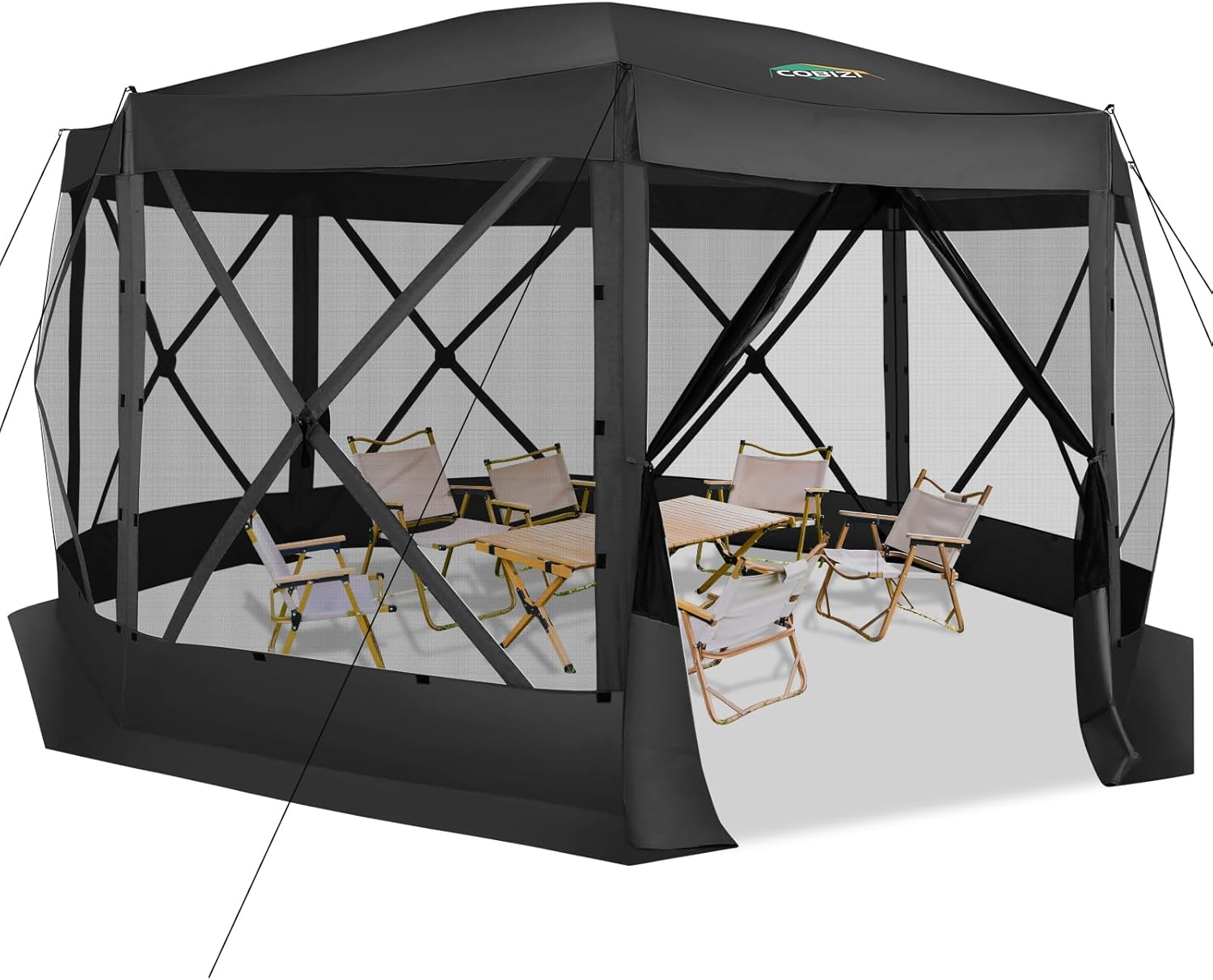 COBIZI Pop Up Gazebo Screen Tent Screen House for Camping, 15×15 Screen Room with Mosquito Netting, Hub Tent Instant Screened Canopy with Carrying Bag and Ground Stakes, Black