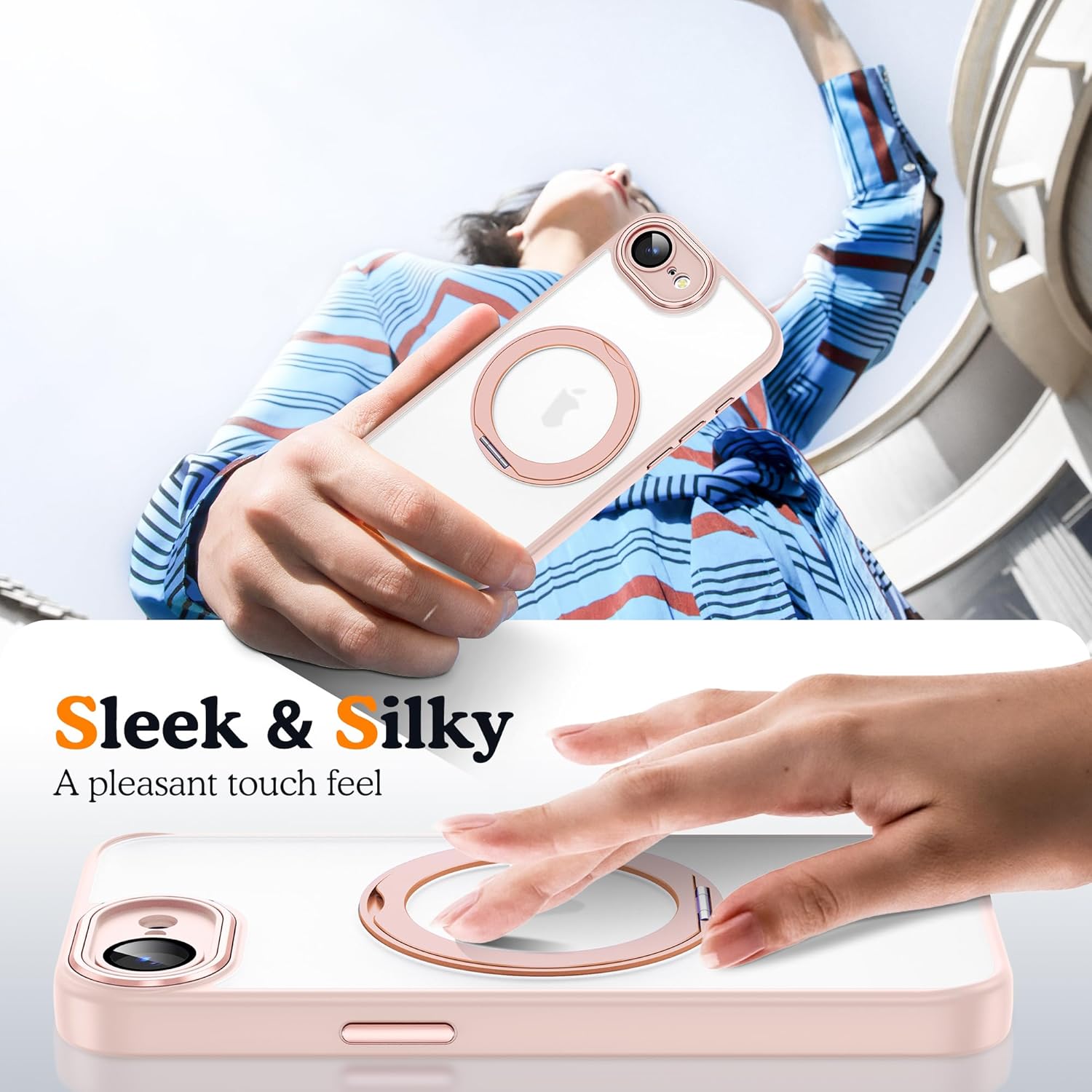 [360° Rotatable Ring Stand] Built-in 360° rotatable stand can support various vertical and horizontal positions, which is stable and durable. You can adjust the angle according to your daily needs, enjoy every moment of watching and free your hands.