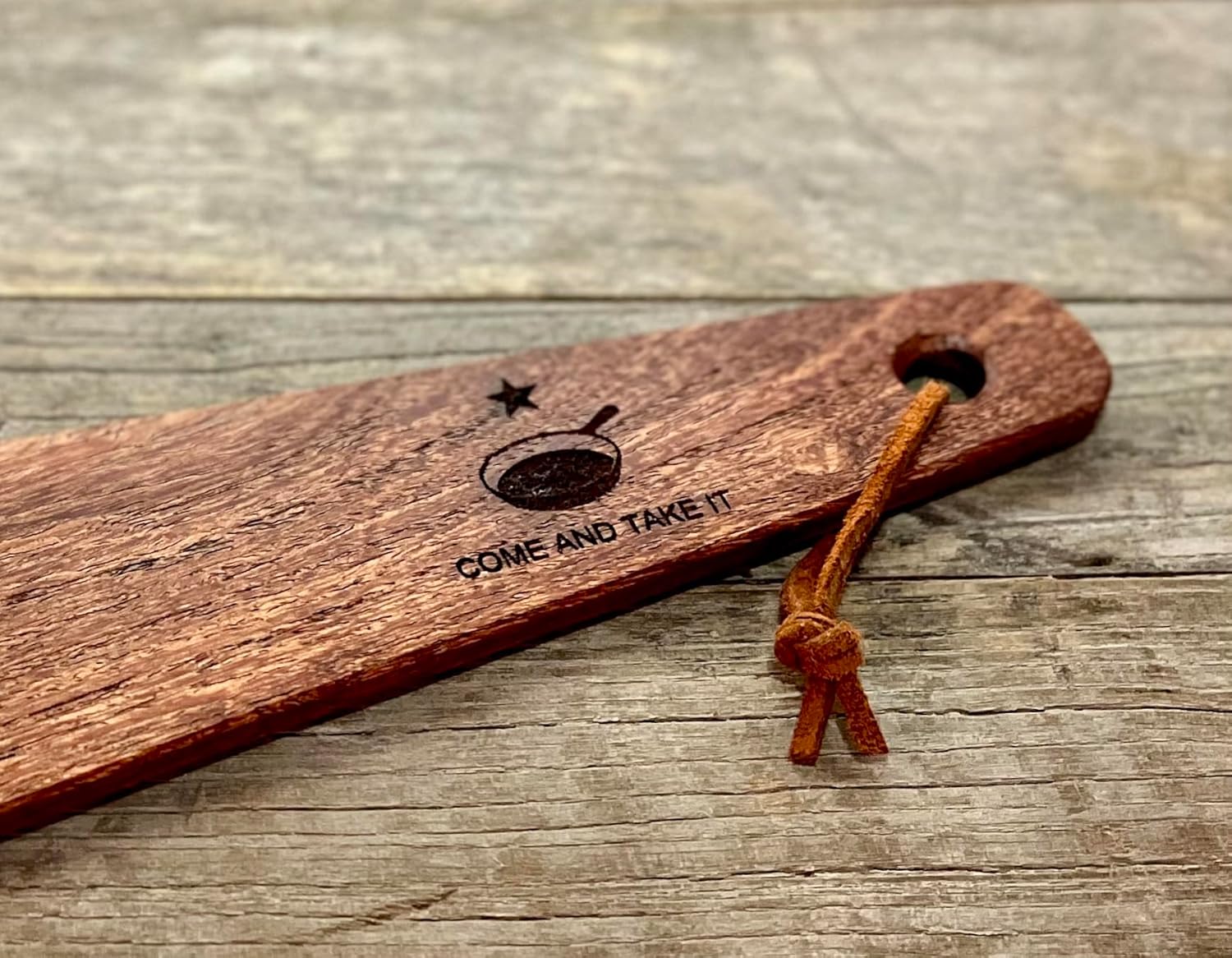 COWBOY SPATULA Mesquite Wooden Spatula for Cast Iron – Handmade in Texas, Made in USA, Safe for non-stick and cast iron cookware. Choose an Engraving! (Come and Take It – Skillet)
