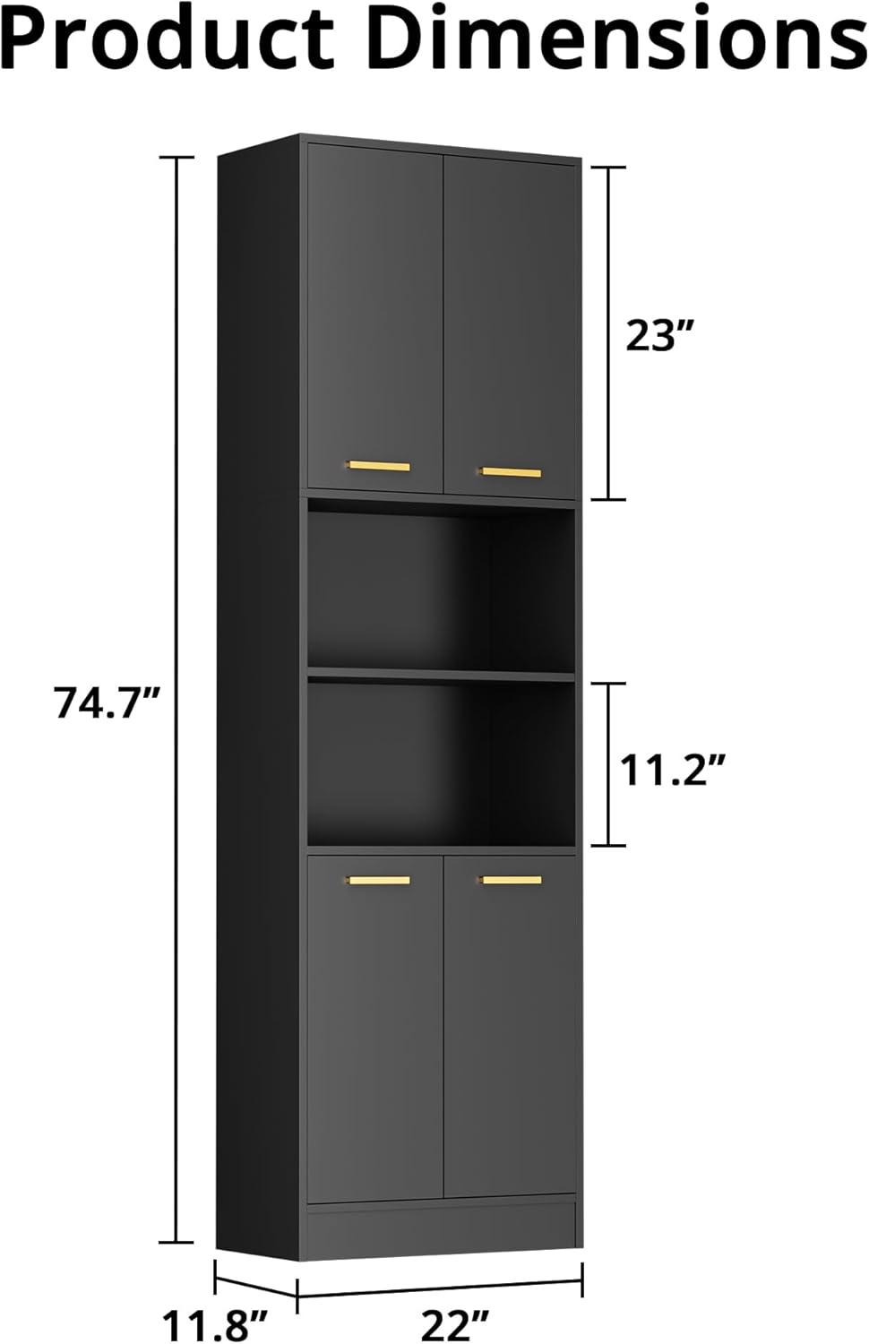 Easy Assembly: With detailed instructions, this kitchen storage cabinet can be easily assembled. The smooth surface of the wooden board makes it easy to clean. The overall size of the cabinet is 22″ W x 11.8″ D x 74.7″ H.