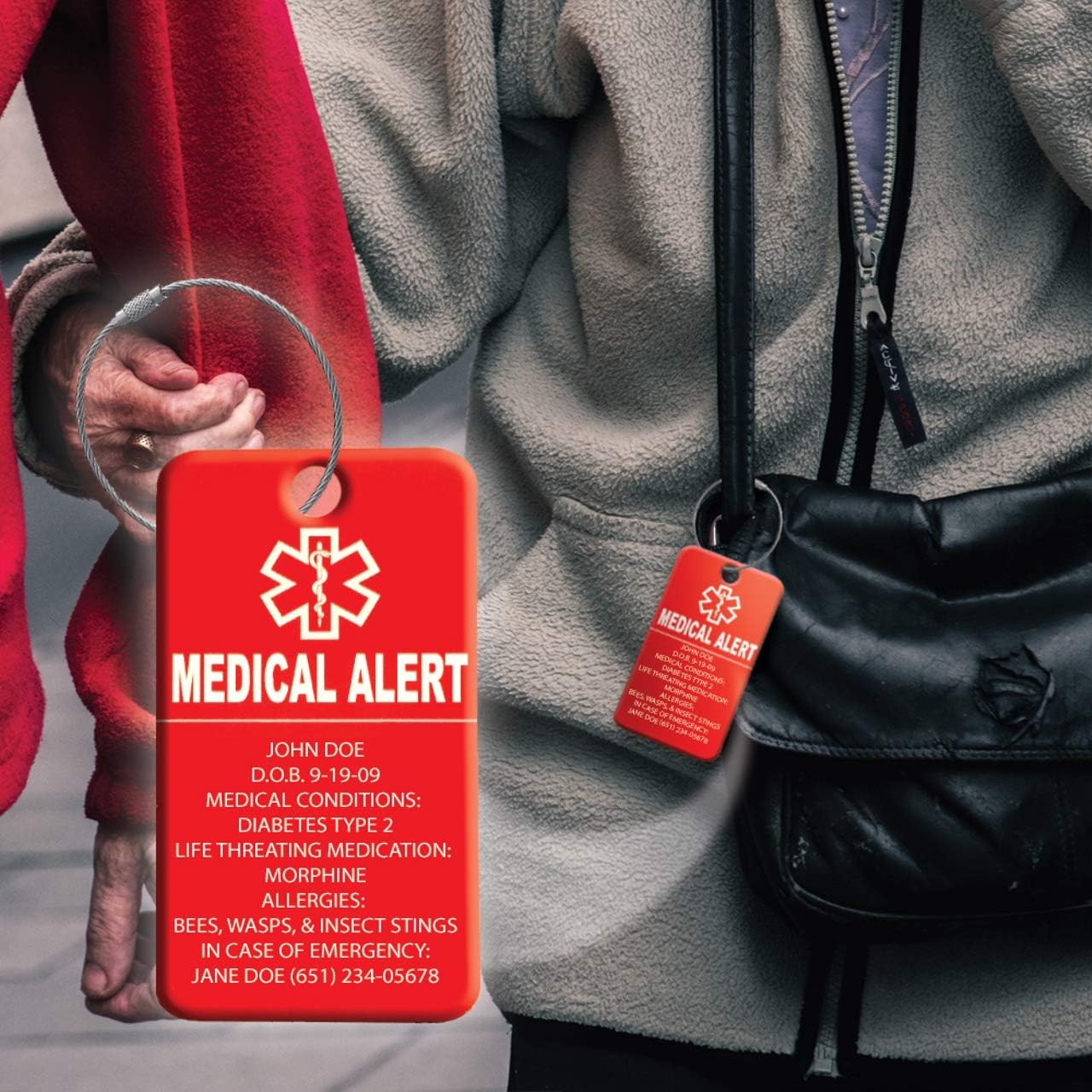 High Visibility & Reliable Alert Tag: Designed with a bold red acrylic finish and an embossed Star of Life medical alert symbol, this easy-to-spot identifier helps ensure quick recognition in emergencies, whether on a bag, medical gear, or travel luggage.