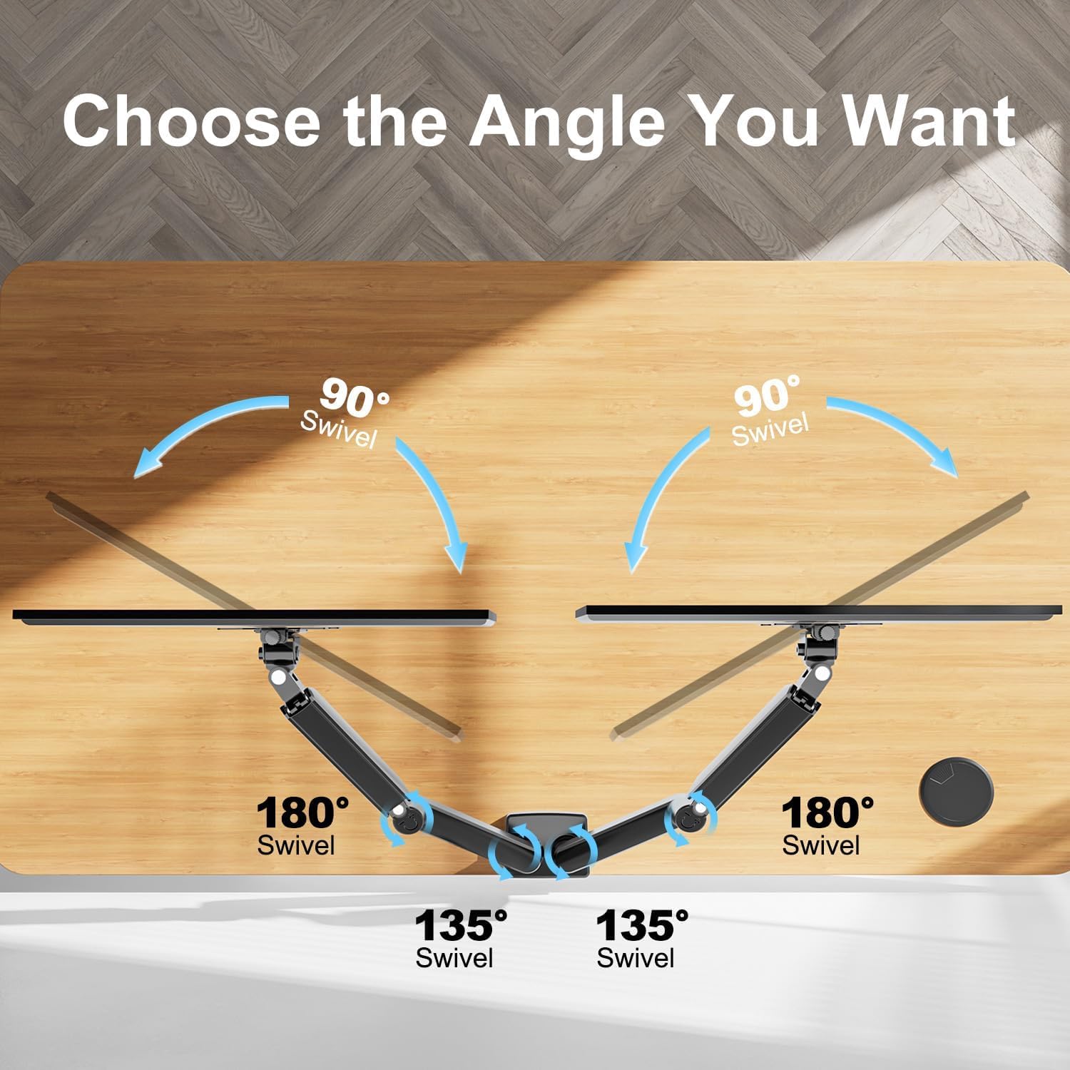 Maximize Your Desk Space : Tired of a messy and crowded desktop? Our monitor mounts for 2 monitors can hold your 2 monitors on the monitor arm off the desktop stably, saving valuable space on your desk and making your workstation spacious