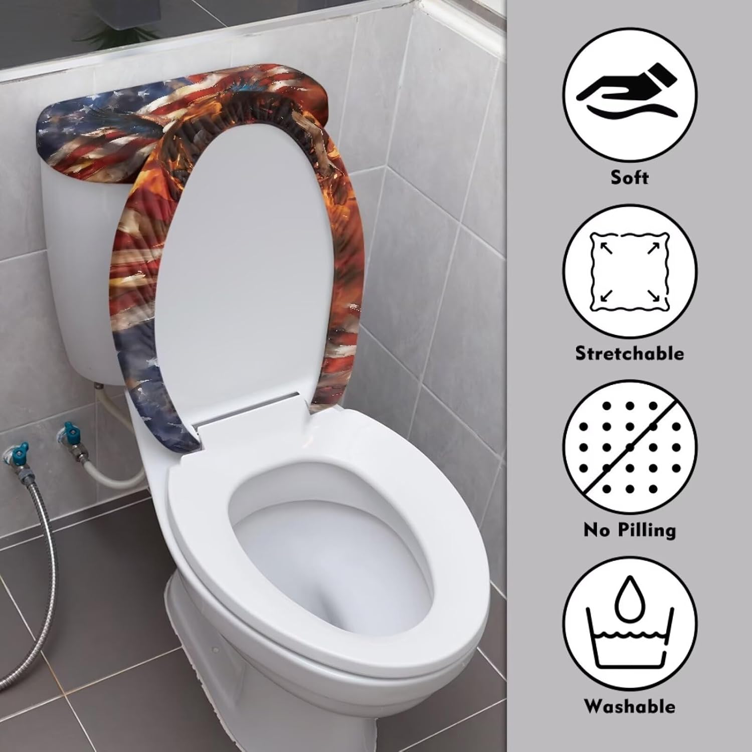 Eagle Toilet Lid Covers for Bathroom Set USA Flag Print Fits Most Toilet Covers Washable Elongated Comfortable Bathroom Gifts