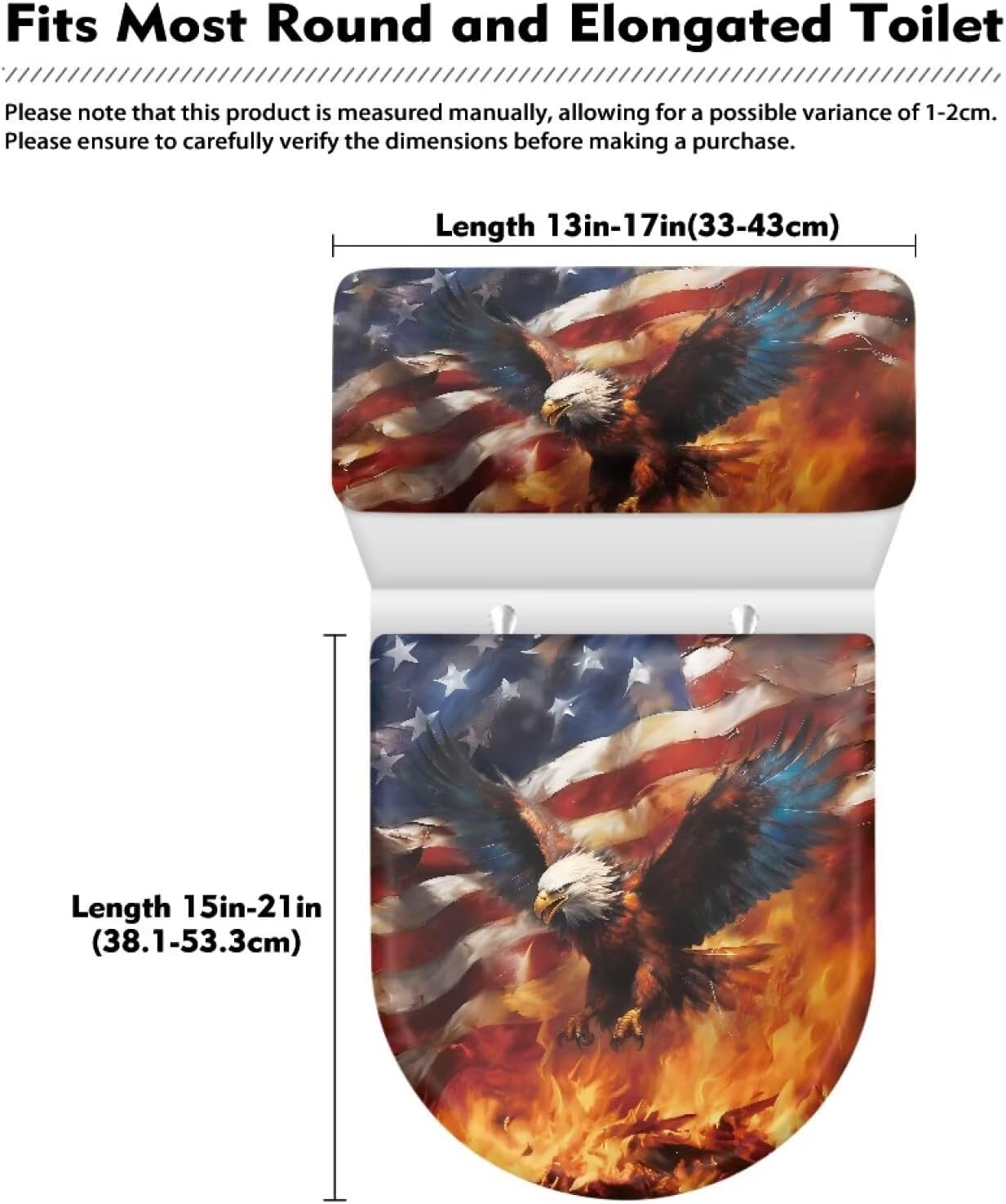 Be the first to review “Eagle Toilet Lid Covers for Bathroom Set USA Flag Print Fits Most Toilet Covers Washable Elongated Comfortable Bathroom Gifts”