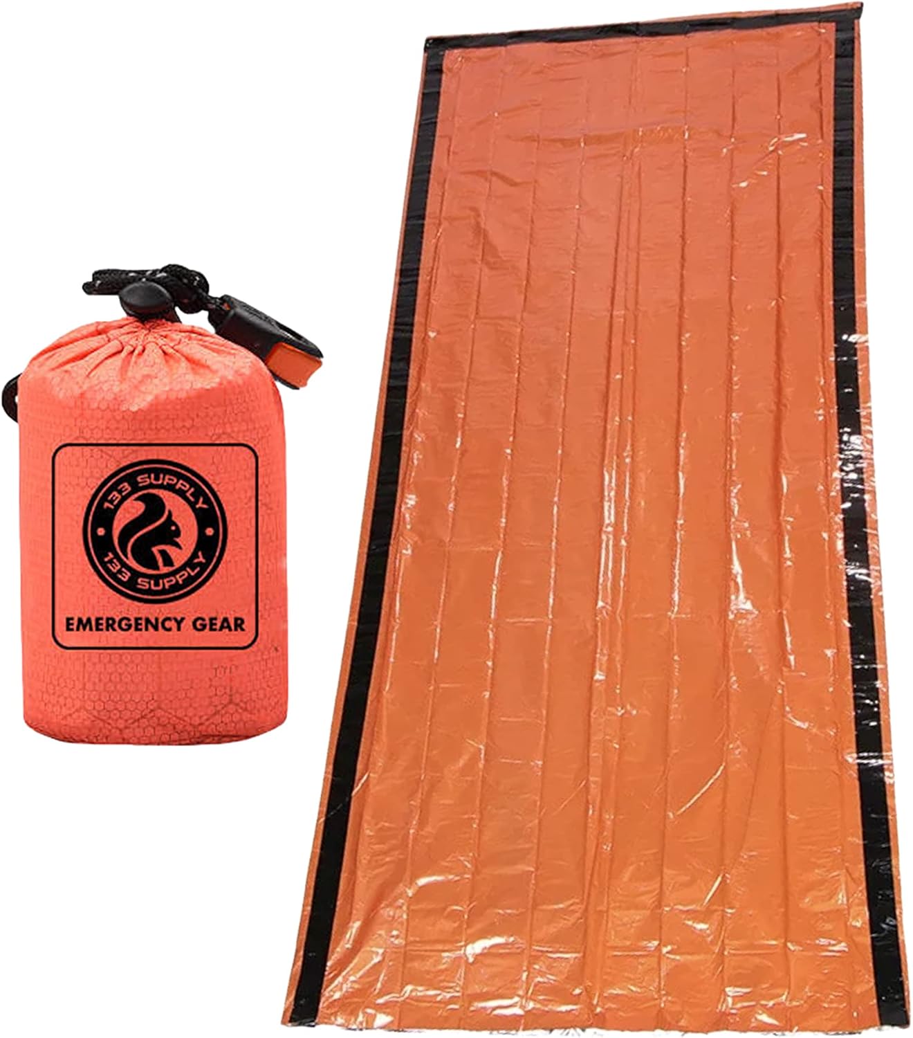 133 SUPPLY Emergency Thermal Bivy Sack, Survival Sleeping Bag, Emergency Blanket – Lightweight Waterproof Stuff Sack – Loud Whistle – Paracord String