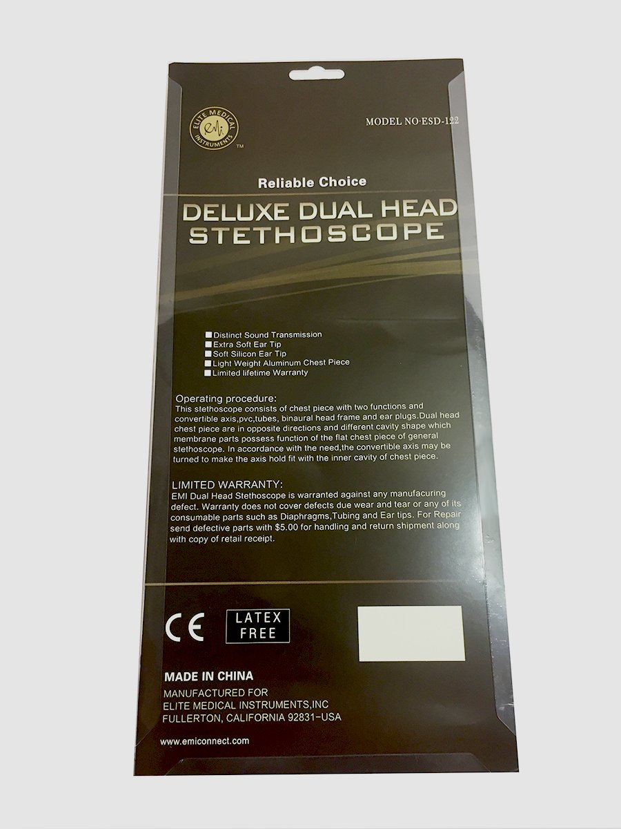 Elite Medical Instruments offers various stethoscopes at different tiers. The Dual Head Stethoscope is our entry level model and good for home use, those on a budget, medical students, and nurse students.