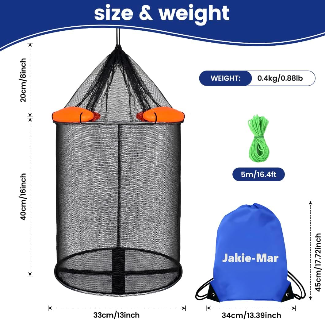 【Two Materials & Sizes Available】: We offer two different materials—nylon floating fish basket and rubber floating fish basket. Each material is available in two sizes, standard and large, to meet your various needs. It’s important to note that the nylon net comes with a nylon material fish basket, while the rubber net comes with a rubber material fish basket