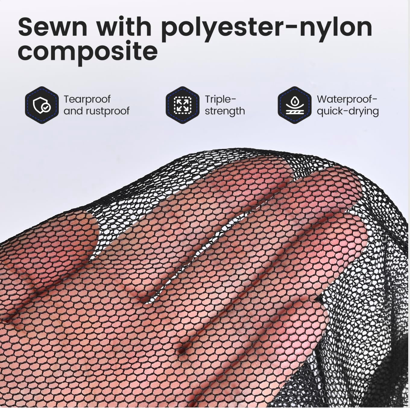 【Product Material】: Fish basket for caught fish are made of polyester-coated nylon, offering enhanced durability and tear resistance. They are waterproof, quick-drying, hook-resistant, corrosion-resistant, and easy to clean, making them suitable for both freshwater and saltwater environments