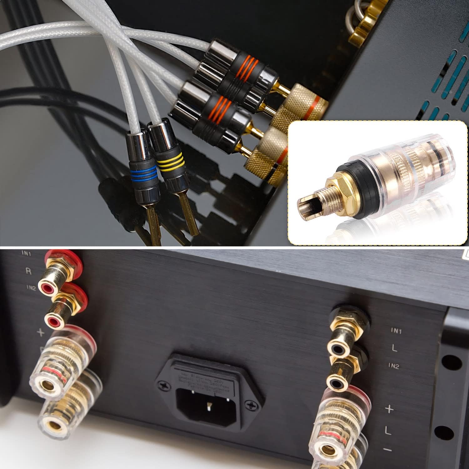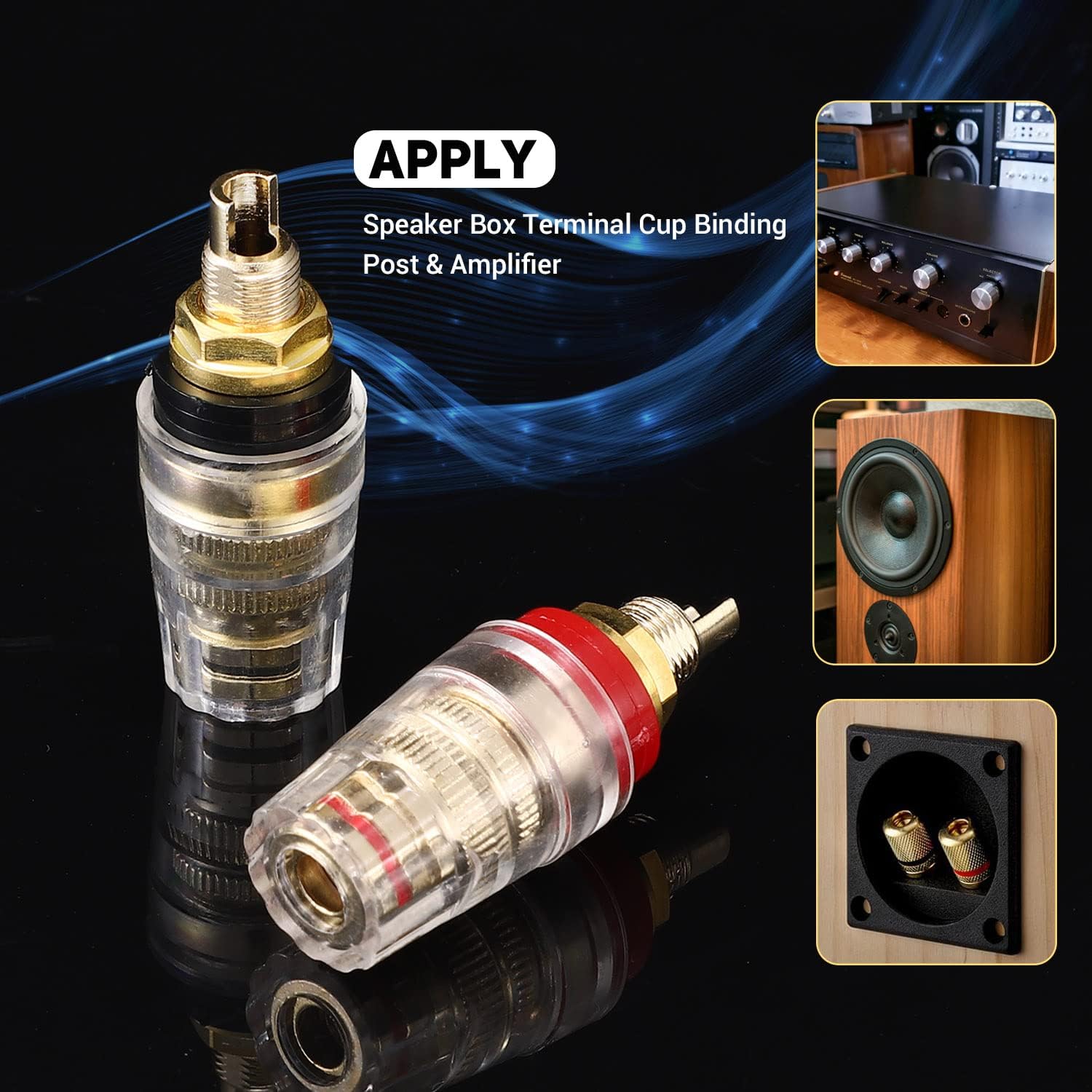 【Premium Quality】– Milled from large chunks of solid brass, these binding posts are plated with 24 karat gold for an oxidation-resistant finish that perseveres over the tests of time. To help prevent accidental shorts or shock, these posts are fully insulated in a clear polycarbonate shell.