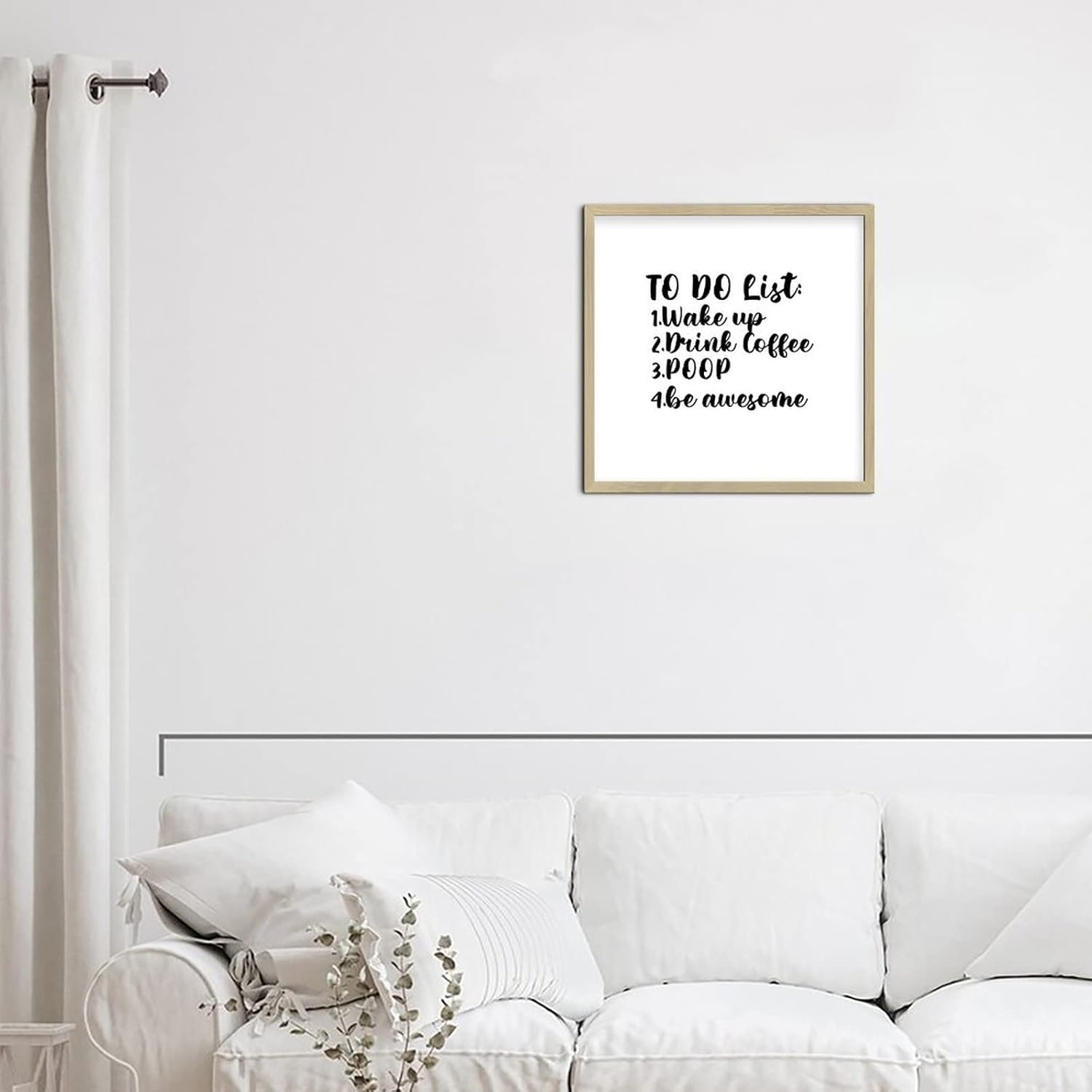 Farmhouse Rustic Wood Frame Kitchen Home Wall Decor Sign Retro to Do List Wake Up Coffee Be Awesome Typography Wall Art Wall Hanging Decor 7×7 Inch