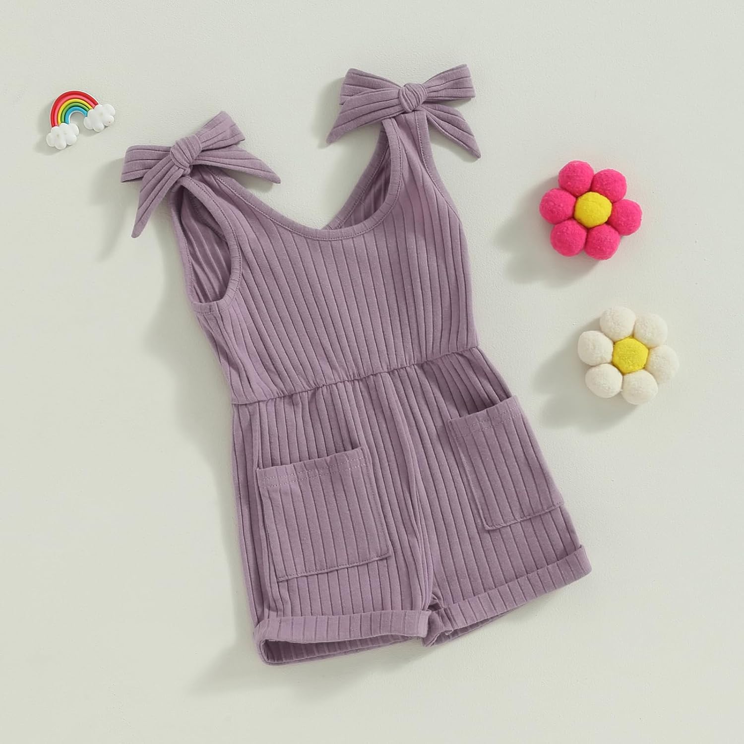 Fernvia Toddler Baby Girl Summer Clothes Sleeveless Ribbed Knitted Jumpsuit Shorts Overalls Baby One Piece Outfit