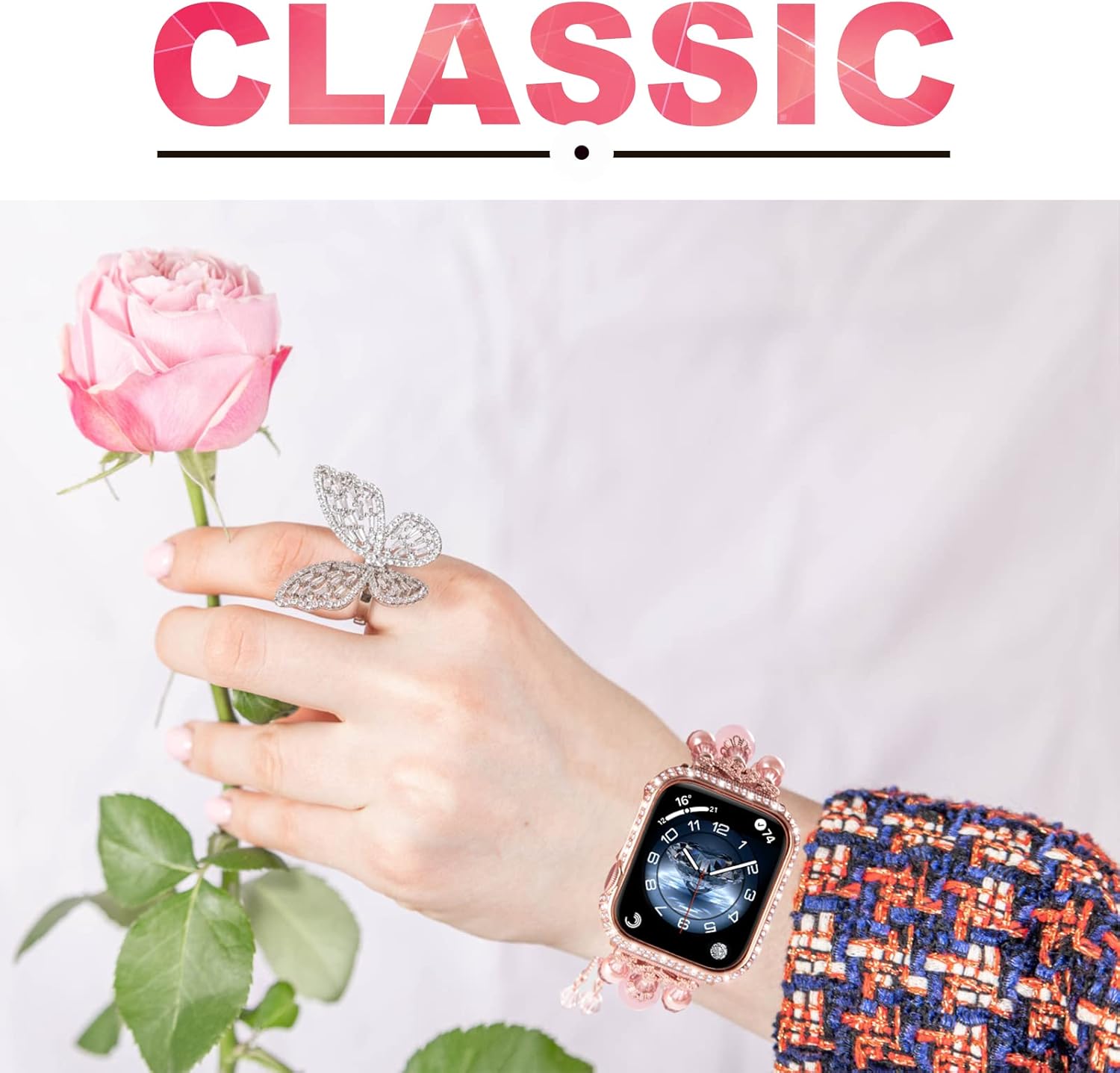 It makes your iwatch look more dressy like a functional piece of jewelry. It makes the watch more versatile if you want to dress up or casual. It packs a glamorous and timelessly elegant punch, add timeless elegance to your look.