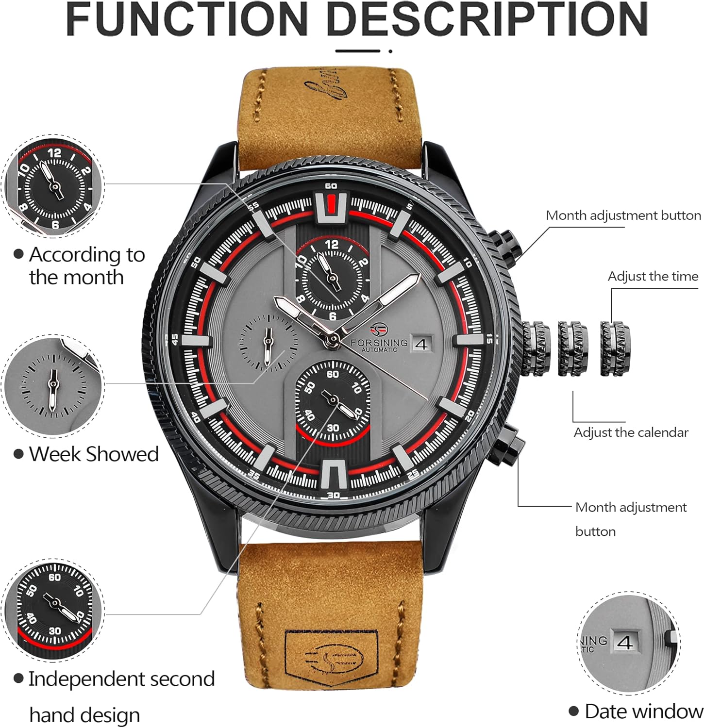 FORSINING Brown Genuine Leather Strap Sport Mechanical Watch Design Reveals Your Fashionable Point of View, PU Leather Band Gives You a New Classic Definition, Stainless Steel Watch Case Makes the Watch More Durable, and It Will Make You Unique and More Fashionable in Street!