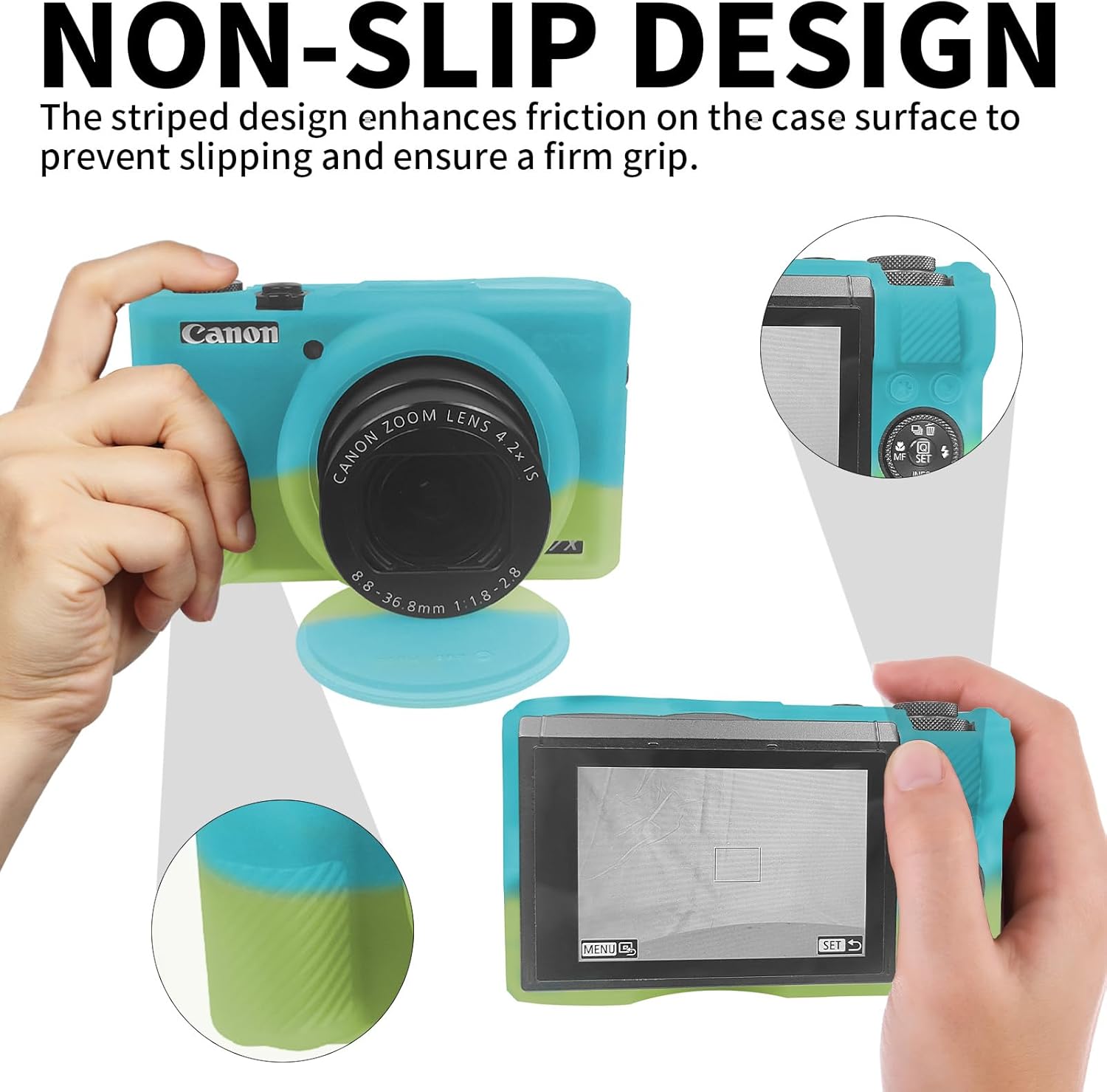 G7X Mark III Case, Soft Silicone Protective Case Cover for Canon Powershot G7X Mark III Digital Camera, Durable Camera Body Skin Protector with Removable Lens Cover, Green Blue