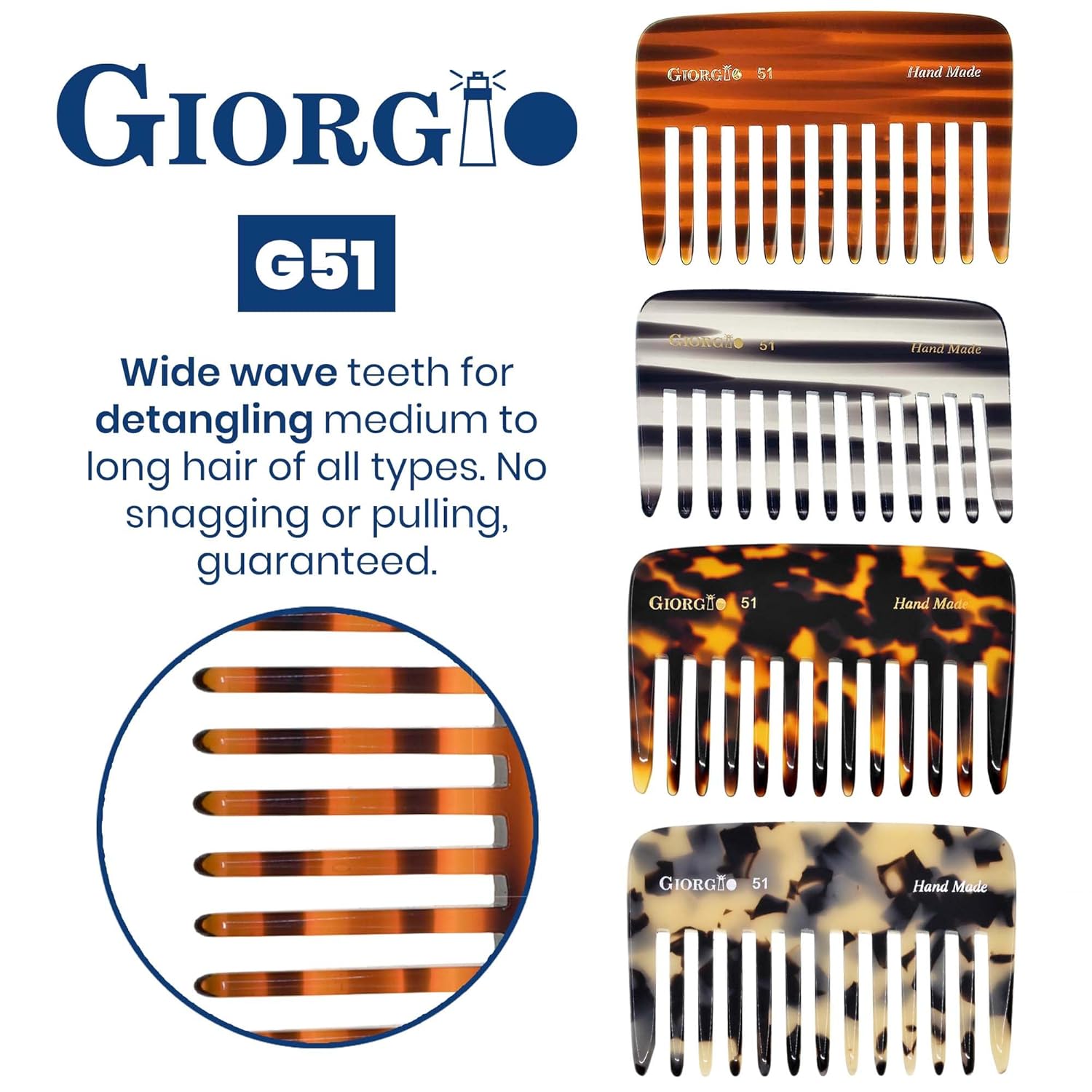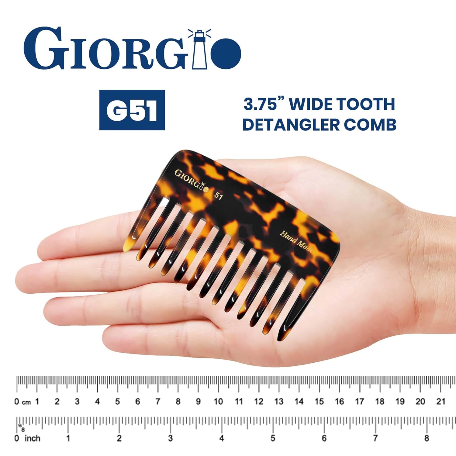 Giorgio G51TY Small Travel Purse Hair Detangling Comb, Wide Teeth Pocket for Thick Curly Wavy Hair. Detangler for Wet and Dry Everyday Care. Handmade of Cellulose, Saw-Cut Hand Polished