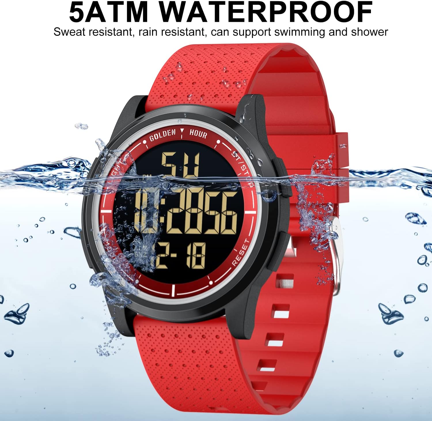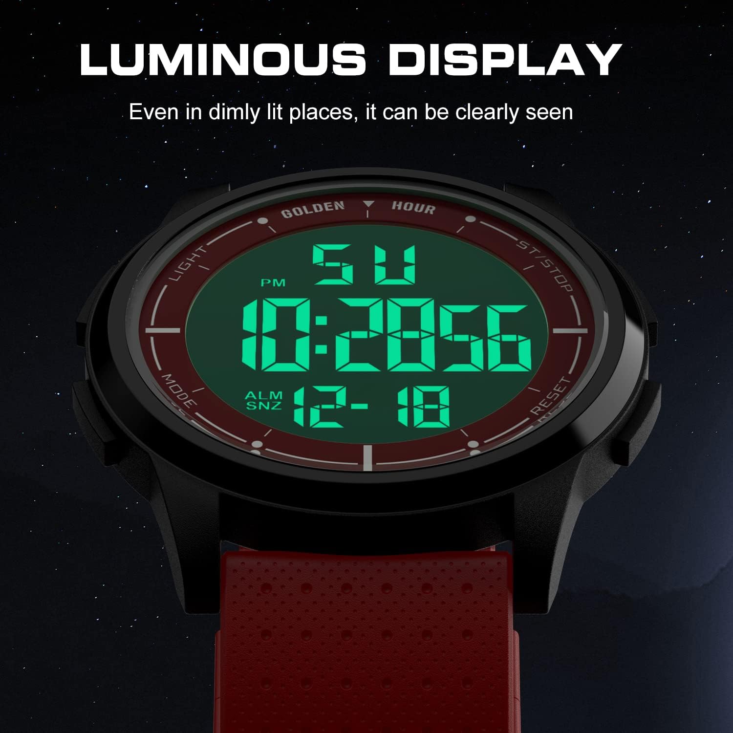 GOLDEN HOUR Ultra-Thin Minimalist Sports Waterproof Digital Watches Men with Wide-Angle Display Rubber Strap Wrist Watch for Men Women