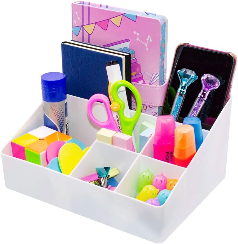 Granvela Home Organizer Bedside Table Organizer Makeup Organizer |Cosmetics Storage Box – 6 Compartments (White)