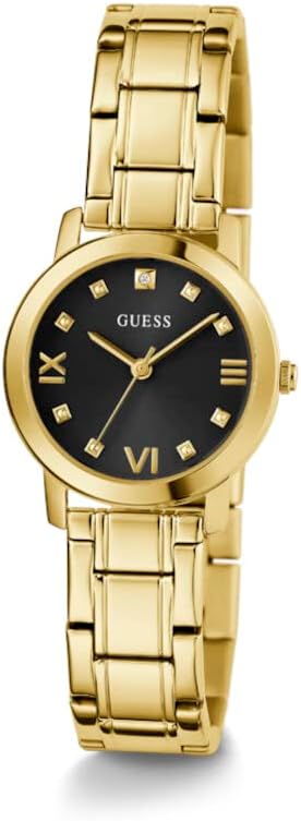 Simply elegant, this silver-tone watch is designed with a glossy pink dial featuring genuine diamond marker at the 12 o’clock hour and a polished steel bracelet.